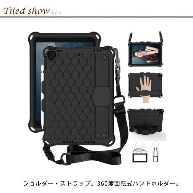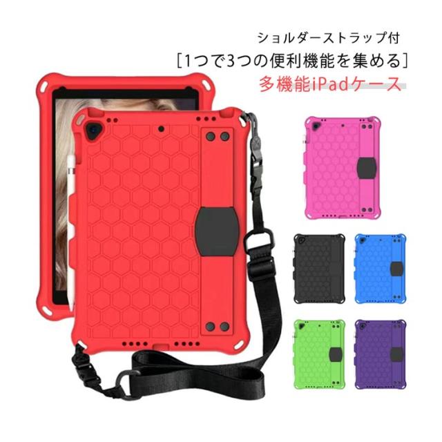 | ショルダーストラップ付 多機能iPadケース 3in1 [1つで3つの便利機能を集める] ショルダー・ストラップ。360度回転式ハンドホルダー。縦横自由な360度回転式スタンド機能 [落下防止] 3層構造で衝撃や落下による破損から大切な本体を守る | |