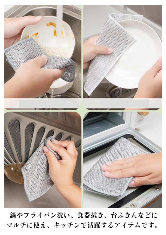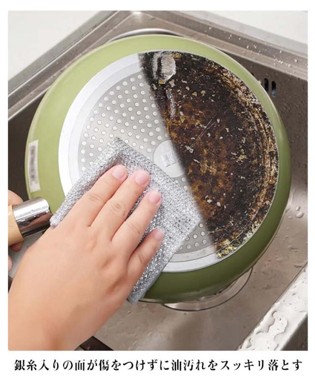 | リバーシブル竹炭キッチンクロス 繰り返し利用可能 30枚セット 銀糸入りの面が傷をつけずに油汚れをスッキリ落とす 鍋やフライパン洗い、食器拭き、台ふきんなどにマルチに使え、キッチンで活躍するアイテムです。 | |