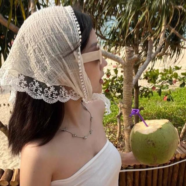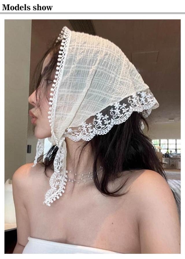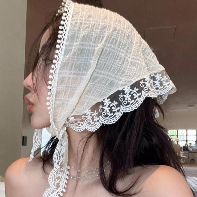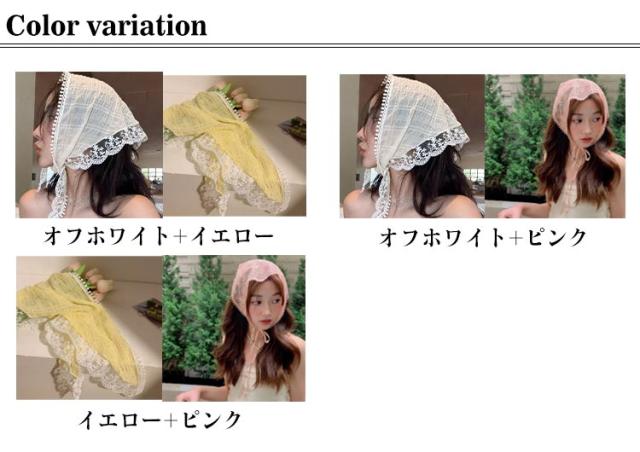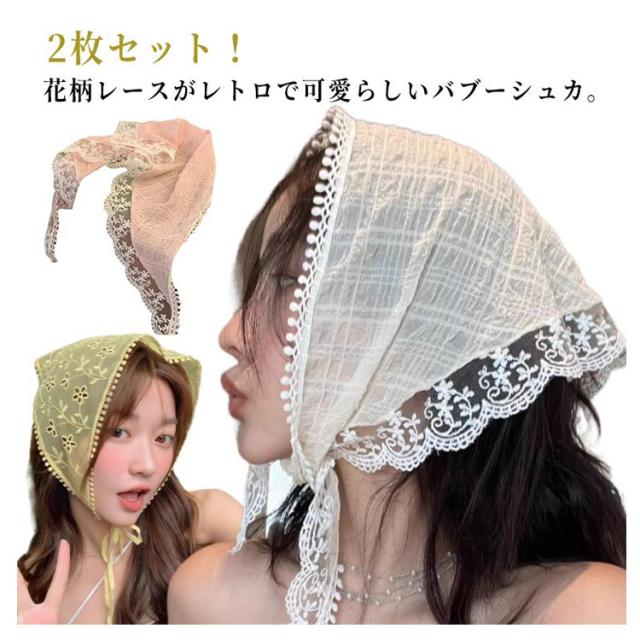 2枚セット! バブーシュカ レース 三角巾 レディース 小顔効果 レトロ バンダナ 花柄 透け感 ヘッドドレス ヘッドアクセサリー ヘアバンド ヘアターバン カチューシャ 柔らか おしゃれ 可愛い ガーリー カジュアル トレンド ヘアアクセ 送料無料