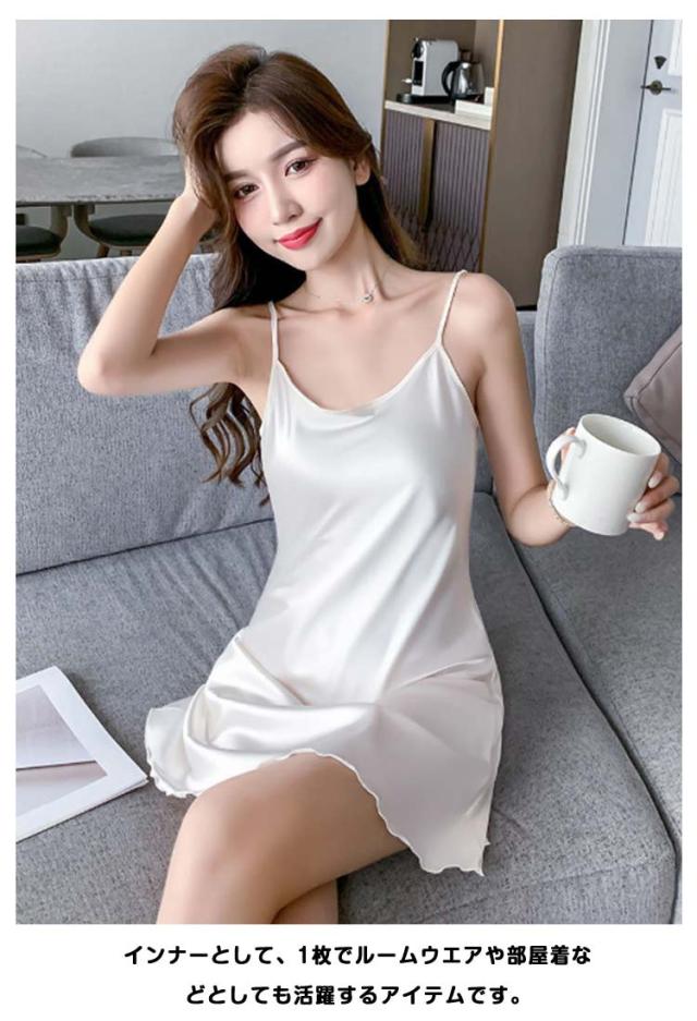 ロング 2枚セット サテン ペチコート エレガント 膝上丈 レディース キャミワンピース インナー サテンキャミソール キャミソール ロングキャミ キャミワンピ 無地 きれいめ 部屋着 ルームウェア 肌着 ノースリーブ
