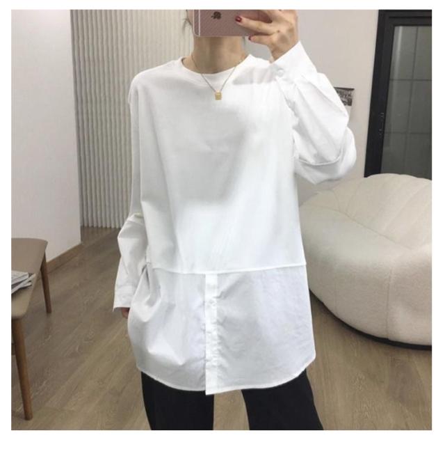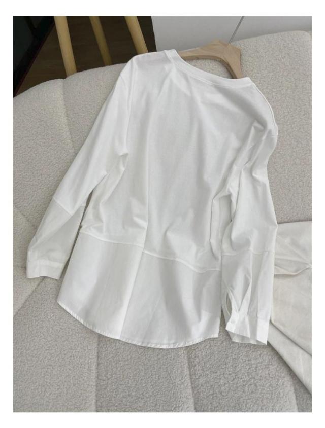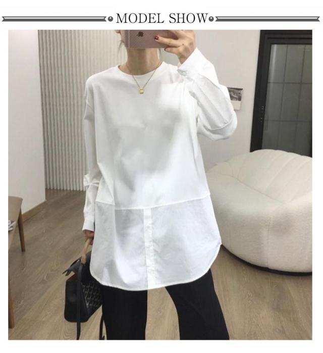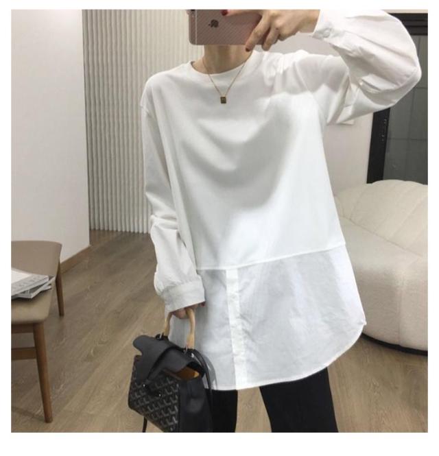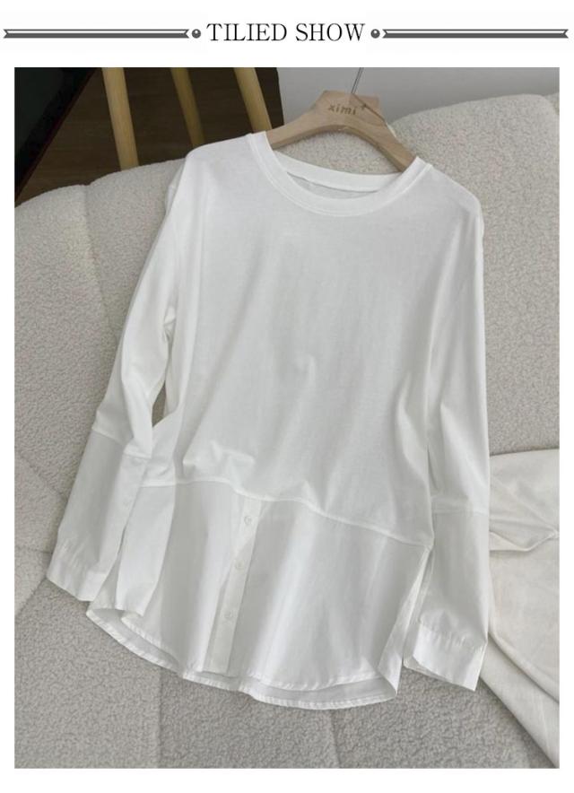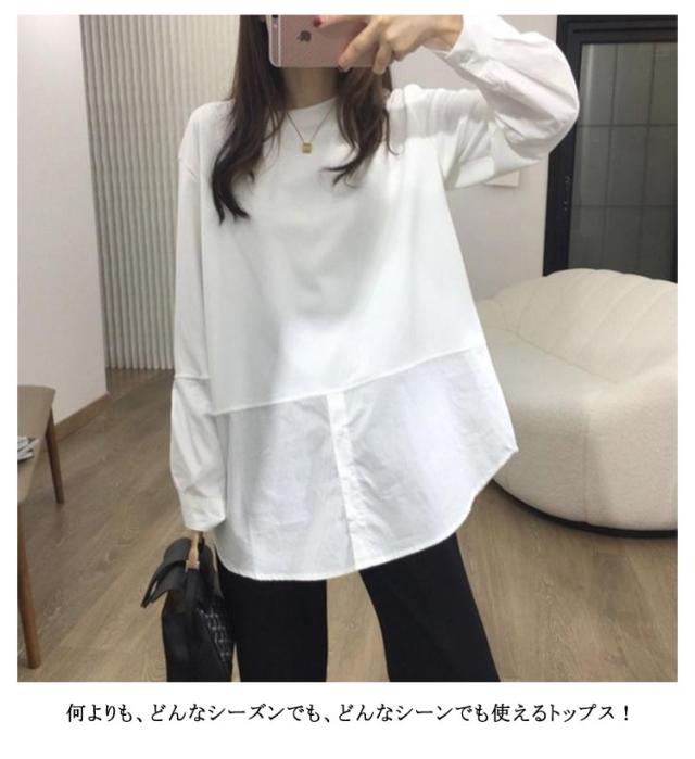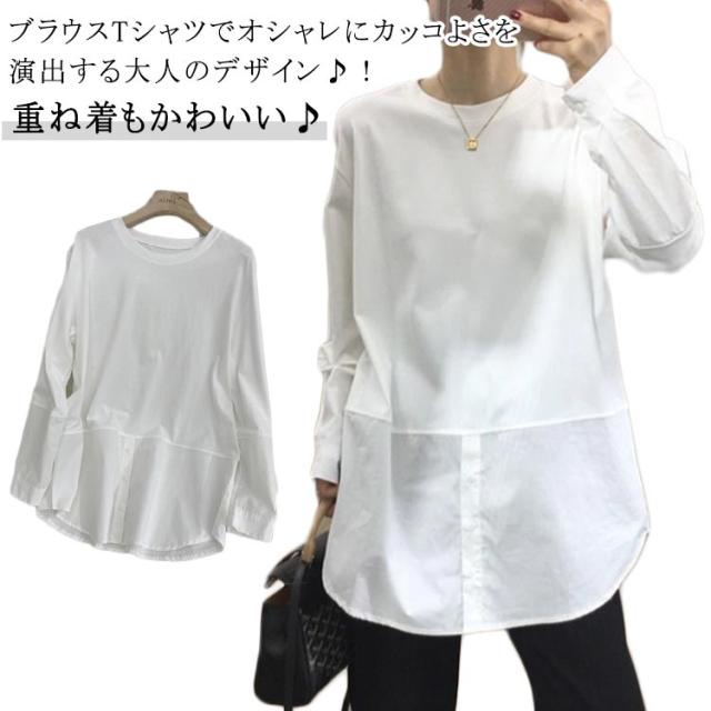長袖 ロンT トップス 綿 重ね着 ブラウス tシャツ 冬 切り替え おしゃれ オフィス レイヤード 長袖tシャツ シンプル 秋 プルオーバー シャツ 春 着回し ゆったり 通勤 綿 大人可愛い 重ね着 大きいサイズ 無地 送料無料 白