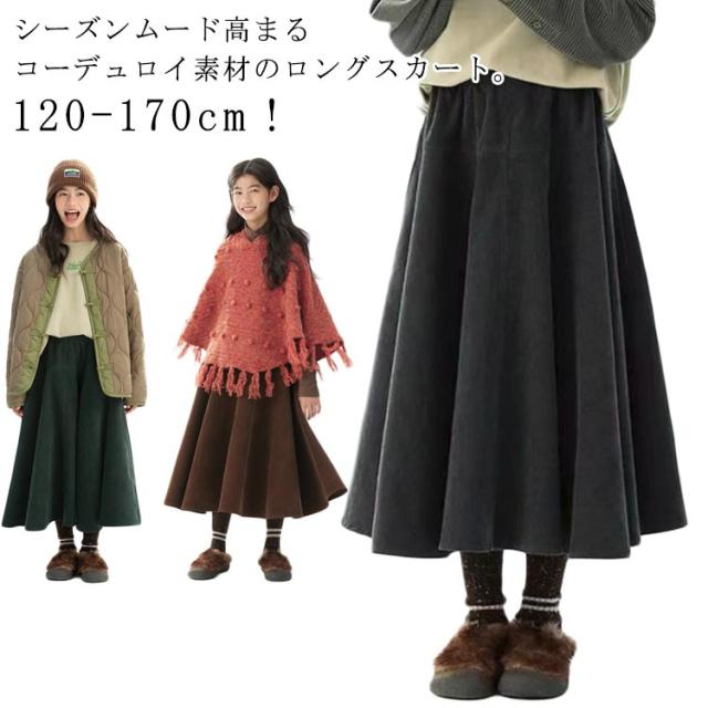 春 スカート ウエストゴム こども服 ロングスカート 秋冬 Aラインスカート コーデュロイ おしゃれ 無地 春 ボトムス ナチュラル シンプル 子供服 ジュニア 140 女の子 キッズ 体型カバー 子ども 普段着 通学着 お出かけ着 120 130 カジュアル 150 160 170