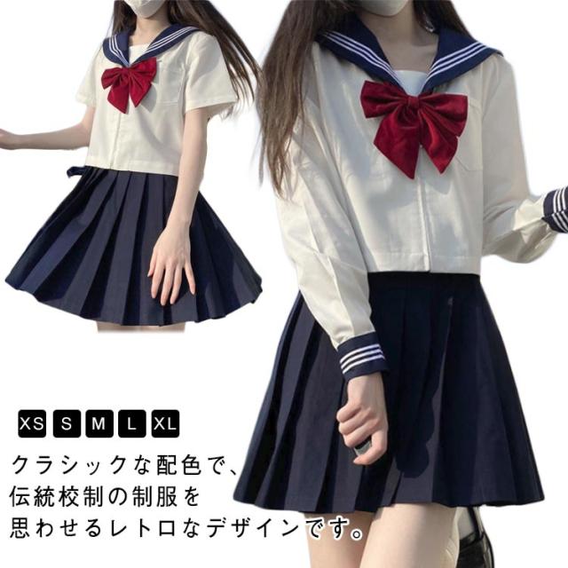 セーラー服 3点セット 仮装 長袖 長袖と半袖の2種類 JK セット 女子制服 制服 ガールズ 衣装 長袖 上下 コスプレ レディース 女子 JK制服 女子高校生 リボン 大人 セーラー服 制服 高校生 学園祭 大人 コスチューム衣装