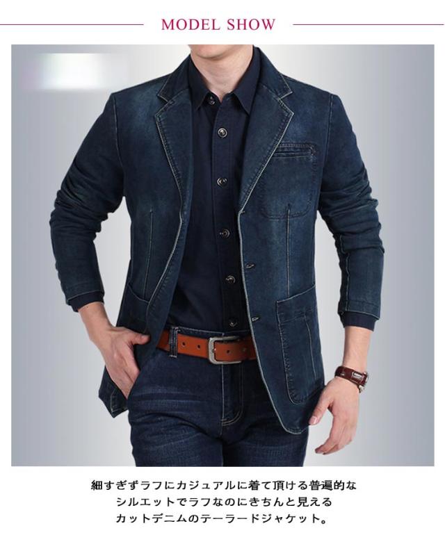 メンズ デニム デニムジャケット デニム ジージャン カットデニム テーラードジャケット 春 Gジャン 秋 長袖 スーツ ショート丈 スリム デニム ストレッチ 秋服 アウター 春物 カジュアル 大人 ビジネス ジャケット カジュアルスーツ 大きいサイズ 綿