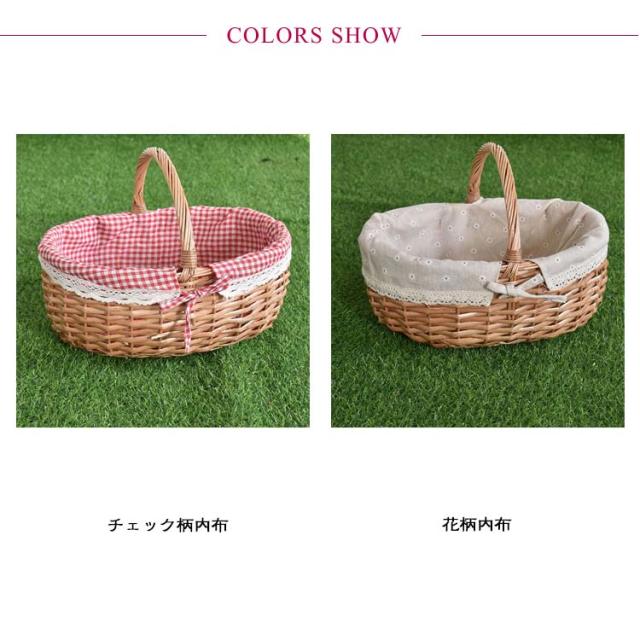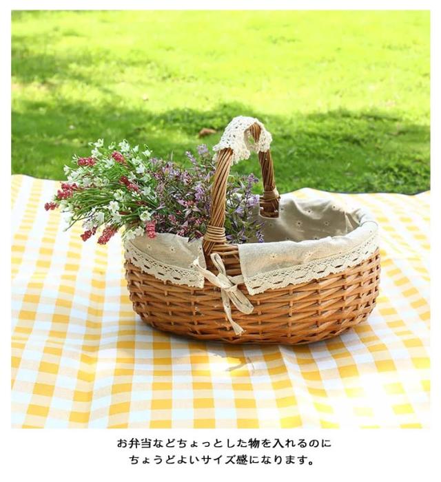 | オーバル型のワンハンドルバスケット。【Sサイズ】 膨らみのあるころんとしたかわいらしいフォルム。 天然素材を使ったナチュラルな風合いが魅力のピクニックバスケットが仲間入り。 レース付きの内布には華やかで上品なクリザンテームが散りばめられていてとってもキュート。 お弁当などちょっとした物を入れるのにちょうどよいサイズ感になります。 家族やカップル、友人同士でのピクニックやお出かけ先のシーンにオススメです。 | |