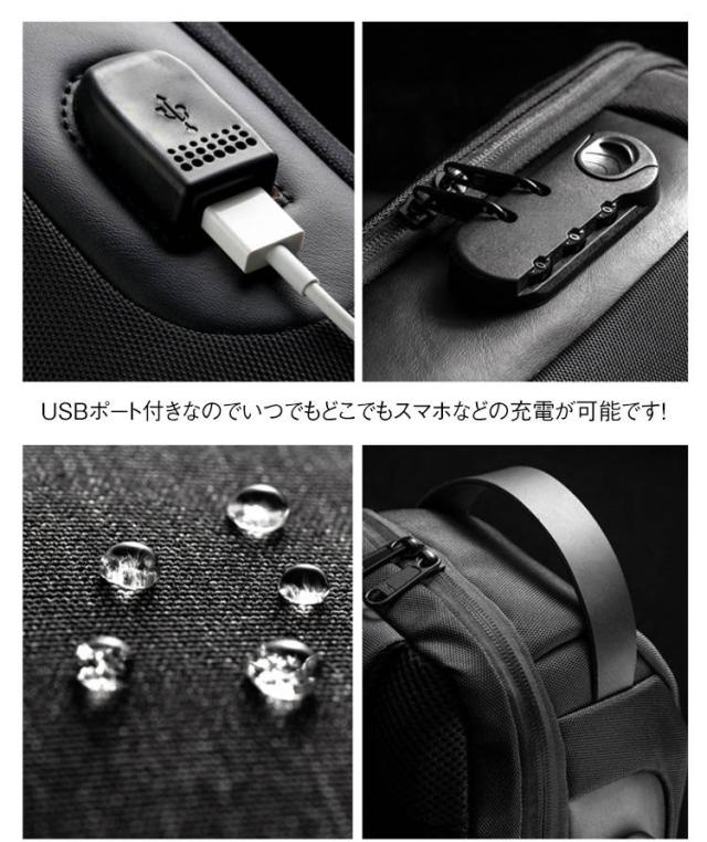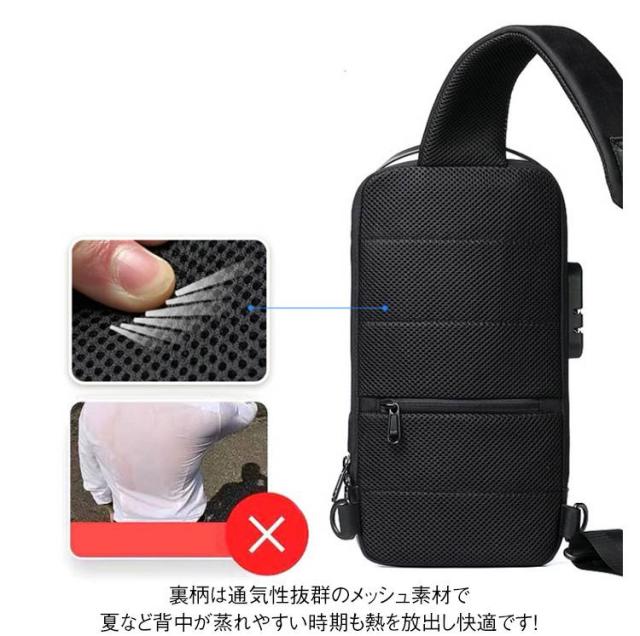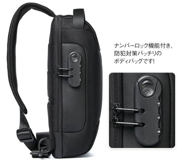 多機能 ショルダーバッグ ロック付き メンズ ナンバーロック機能付き!ボディバッグ 斜めがけ カジュアルバッグ 防犯対策 撥水 ナンバーロック機能付き!ボディバッグ USBポート付き 大容量 通勤 通学 旅行 アウトドア レジャー