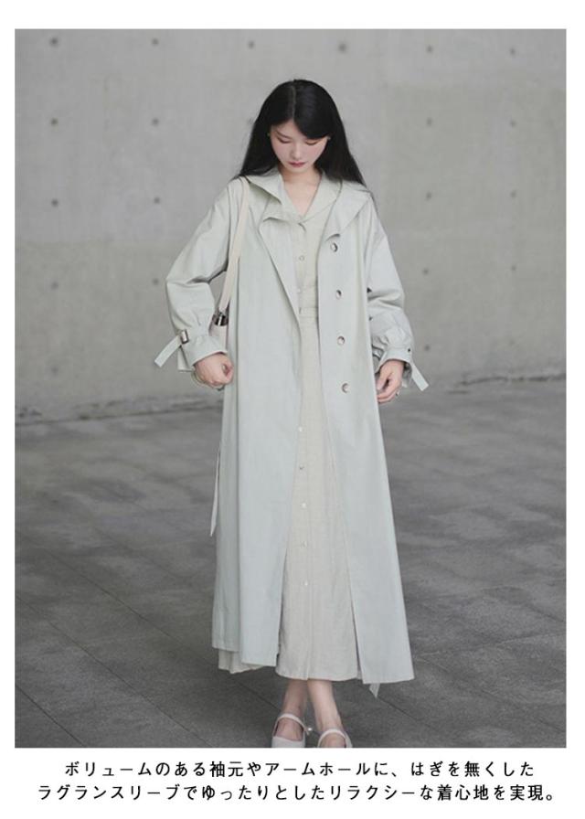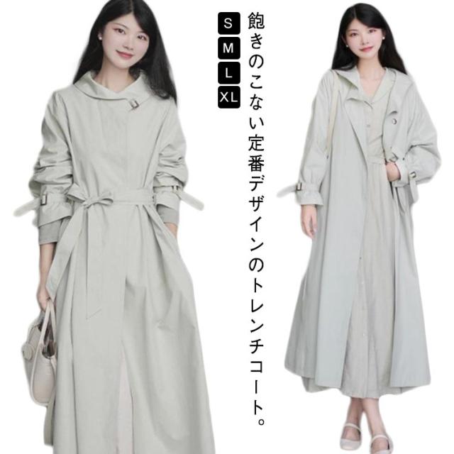 ロングコート スプリングコート 着やせ ワンピース トレンチ ライトアウター スプリングコート アウター スプリング 大きいサイズ ドロップショルダー ビッグ ラップワンピース 体型カバー ウエストリボン コート ロングトレンチ 通勤 入学式 入園式
