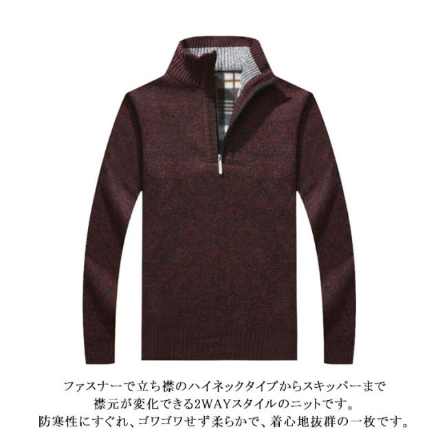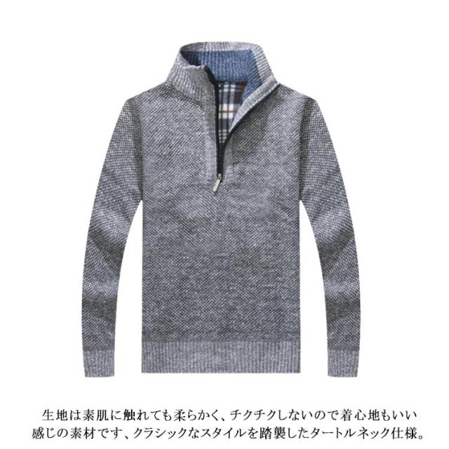 | シンプルで無地なデザインでありながら、タートルネック本来の特徴である首元を暖かく包み込み首周りの暖かさをキープ、がっちり保温してくれます。 生地は素肌に触れても柔らかく、チクチクしないので着心地もいい感じの素材です、クラシックなスタイルを踏襲したタートルネック仕様。 伸縮性もあり、動きやすく、適度な厚みで、アウターを着てもごわつきを感じません。 ざっくりとした生地感で雰囲気を楽しむスタイリッシュな無地アイテムなので、スマートなネック部分が魅せる健康的な爽やかさ。 ファスナーで立ち襟のハイネックタイプからスキッパーまで襟元が変化できる2WAYスタイルのニットです。防寒性にすぐれ、ゴワゴワせず柔らかで、着心地抜群の一枚です。 | |