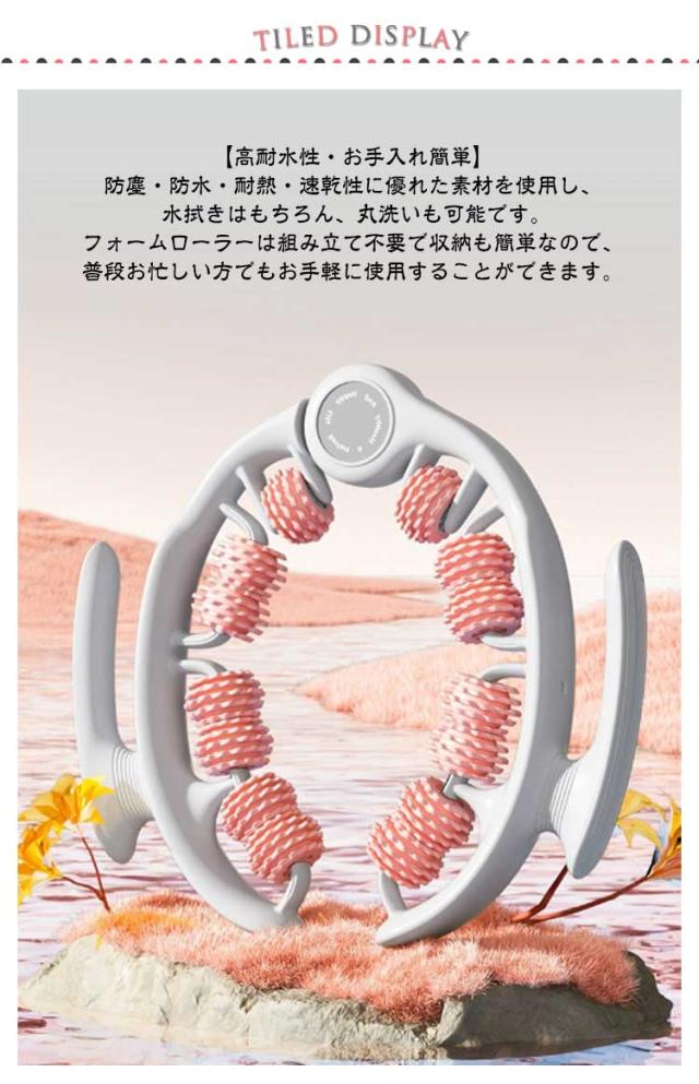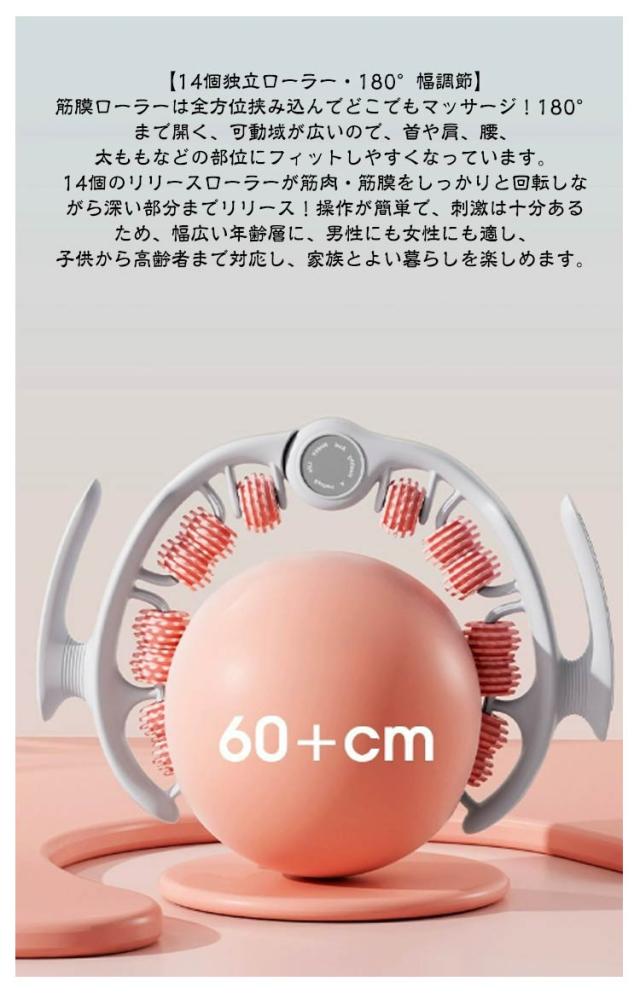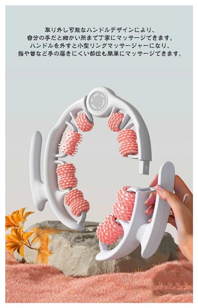 | 【取り外し可能】【全身リリース】 取り外し可能なハンドルデザインにより、自分の手だと細かい所まで丁寧にマッサージできます。ハンドルを外すと小型リングマッサージャーになり、指や首など手の届きにくい部位も簡単にマッサージできます。 【14個独立ローラー・180°幅調節】筋膜ローラーは全方位挟み込んでどこでもマッサージ!180°まで開く、可動域が広いので、首や肩、腰、太ももなどの部位にフィットしやすくなっています。14個のリリースローラーが筋肉・筋膜をしっかりと回転しながら深い部分までリリース!操作が簡単で、刺激は十分あるため、幅広い年齢層に、男性にも女性にも適し、子供から高齢者まで対応し、家族とよい暮らしを楽しめます。 【人間工学に基づく設計・楽にフィット】 ふくらはぎローラーは人間工学に基づいたデザイン、5行列の歯車、接触面が多く、力が最大限に無駄なく加わります。緻密に計算された角度、ローラーの傾斜を35°にすることで、立体的な3Dの動きを実現します。マッサージ師の指のようにツボを最大限に刺激します。また、きんまくローラーは静音設計を採用し、いつでもどこでも快適なマッサージをお楽しみいただけます。 【高品質素材を採用・耐久性UP↑】 フォームローラーは上質なPP+TPR素材を採用し、普通のEVA素材より耐久性が数倍長持ちです。より安全で肌を傷つけず、柔らかさと滑り止めに優れています。 【高耐水性・お手入れ簡単】防塵・防水・耐熱・速乾性に優れた素材を使用し、 水拭きはもちろん、丸洗いも可能です。フォームローラーは組み立て不要で収納も簡単なので、普段お忙しい方でもお手軽に使用することができます。 | |