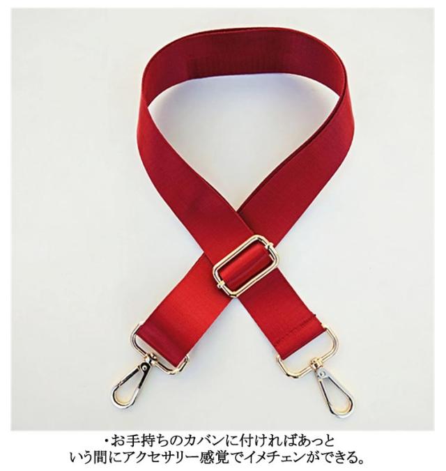 | 選べる4種類金具 全10色 ・高級感が漂うゴールド金具がアクセントに♪ナイロン製のショルダーストラップが登場。 ・3.8cm幅広ストラップで肩にかけても疲れにくいのも魅力的。 ・ナスカンは360度回転するからねじれにくいのも嬉しいポイント。 ・お手持ちのカバンに付ければあっという間にアクセサリー感覚でイメチェンができる。 | |