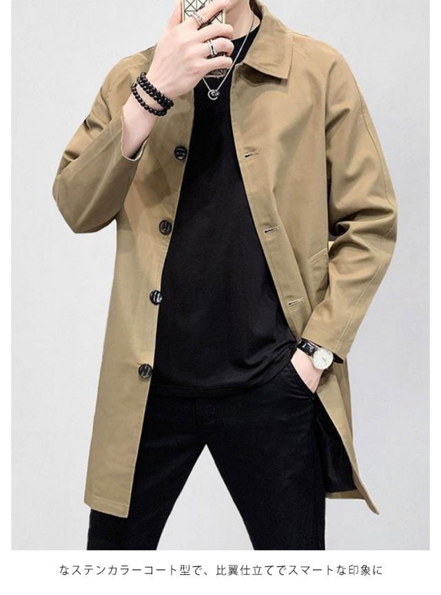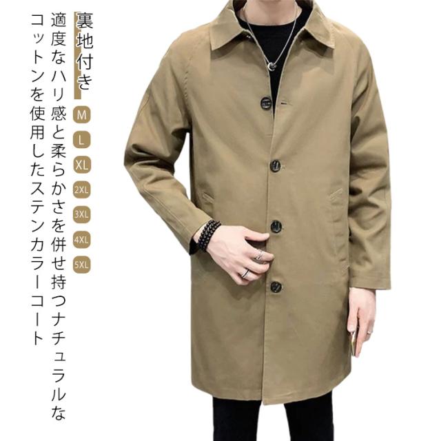 ステンカラーコート メンズ コート 春 秋 トレンチコート ビジネスコート ロングコート ミドル丈 スプリングコート 大人 カジュアル 春コート 通勤 春服 秋服 無地 ゆったり 裏地付き ハーフコート ナチュラル 大きいサイズ 黒 ベージュ 【送無】