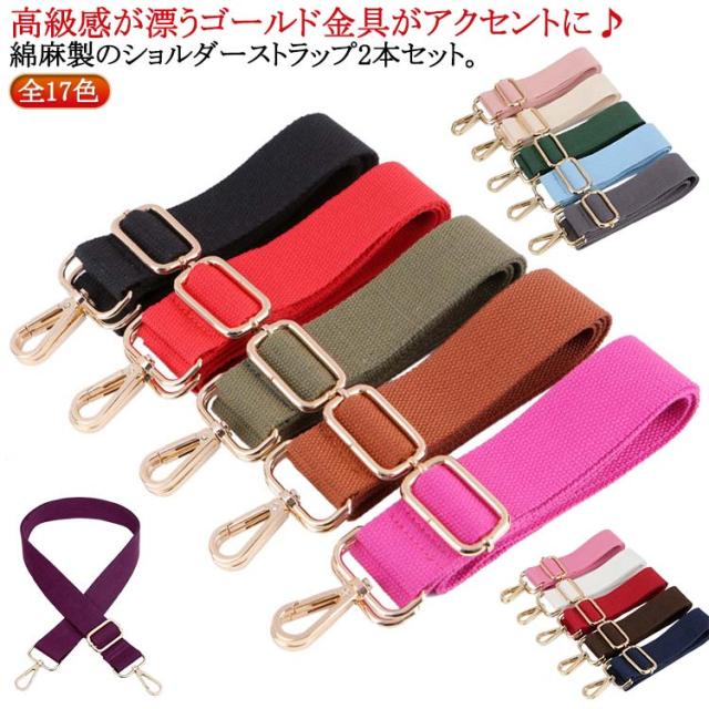 ショルダー紐 ショルダーストラップ ショルダーベルト 交換用 キャンバス 斜めがけ 太め コットンリネン 綿麻 幅広 アジャスター バッグストラップ 2本セット 全17色