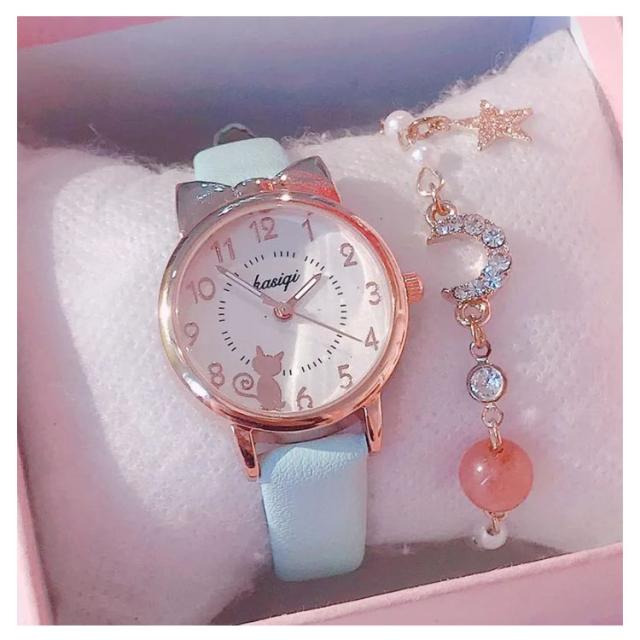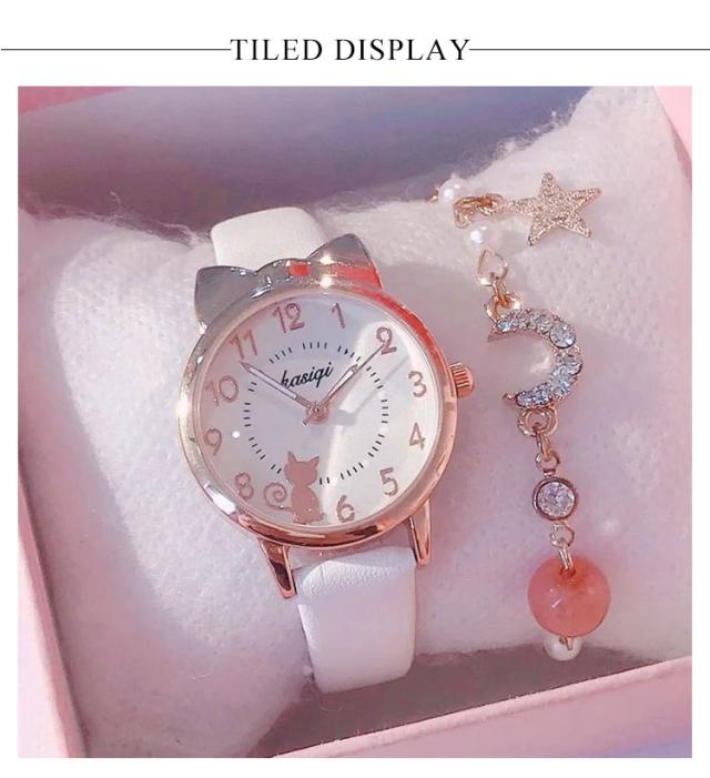 腕時計 可愛い 腕時計 女の子 防水 ブレスレット付き 夜光 猫柄 中学生 子ども リストウォッチ 小学生 子供用 キッズウォッチ ギフト プレゼント ジュニア ガールズ お洒落 誕生日 贈り物