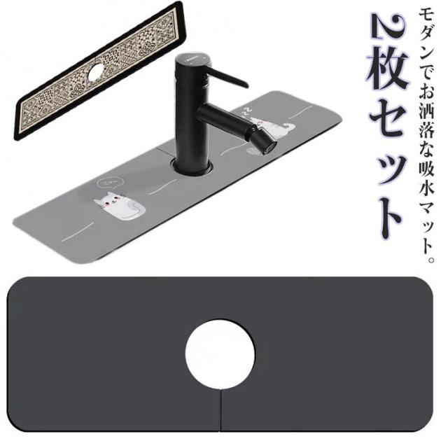 2枚セット 防カビ 蛇口マット 蛇口乾燥マット 速乾吸水 さっと吸収 キッチン 洗面台 シンクマット 水切りマット 蛇口用マット 水栓マット キッチン 滑り止め 消臭 ソフト 送料無料 モダン
