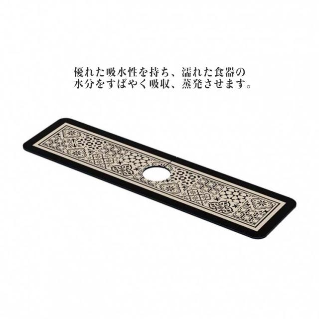| モダンでお洒落な吸水マット。 優れた吸水性を持ち、濡れた食器の水分をすばやく吸収、蒸発させます。 表面が汚れた場合にはサッと洗い流すだけでOK カットできるから、市販ほとんど蛇口サイズご利用できます。 | |