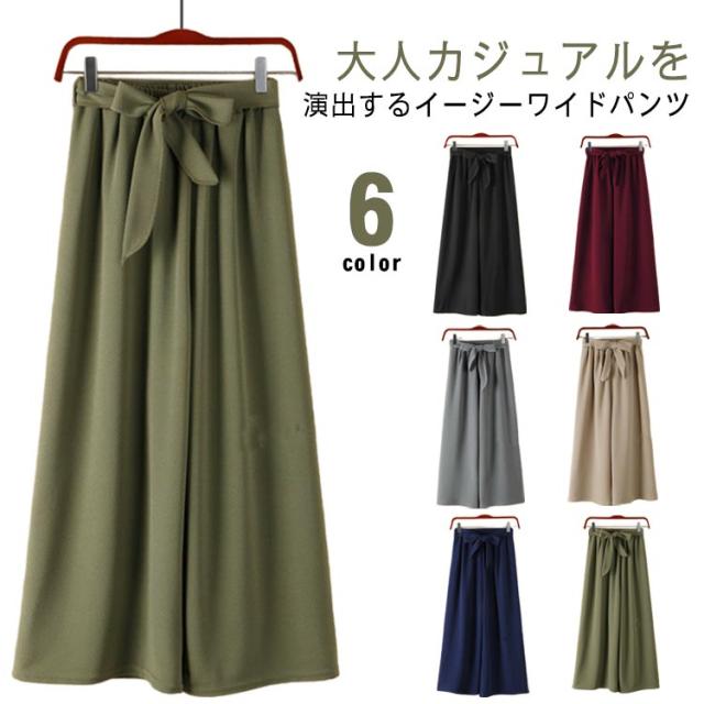 ウエストゴム 美脚 ガウチョ ハイウエスト 体型カバー カーチョ レディース 無地 ワイドパンツ おしゃれ カジュアル OL ワイドパンツ ガウチョパンツ ワイド パンツ ボトムス ゆったり 薄手 春夏 ふんわり シンプル 通勤 通学 着?せ フリーサイズ