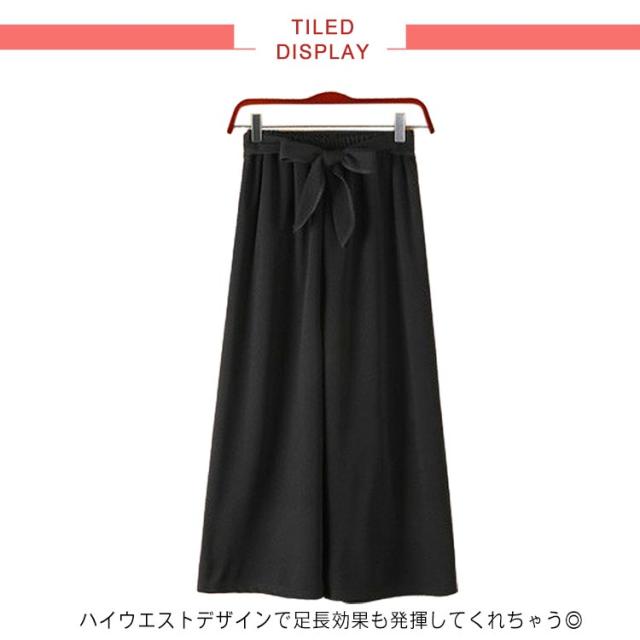 | 大人カジュアルを演出するイージーワイドパンツ ハイウエストデザインで足長効果も発揮してくれちゃう◎ 足首魅せでヌケ感をプラスし女性らしさもしっかりアピール。 付属のリボンが可愛らしく、大人レディに仕上がります。 大人映えする落ち着いた色柄なので、オフィスコーデにもOKなのが嬉しいですね◎ トップスをインしたスタイルにも相性バッチリ! | |