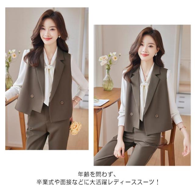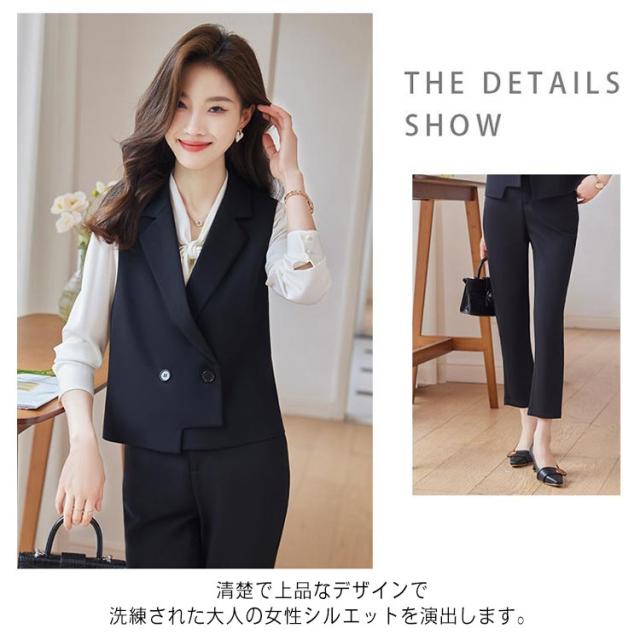 レディース ベスト ママスーツ パンツセットアップ ロンングパンツ ブラウス スーツベスト ジレ 体型カバー パンツスーツ セットアップ 上下セット 3点セット 大人女性 通勤 OL セレモニー カジュアル フォーマル