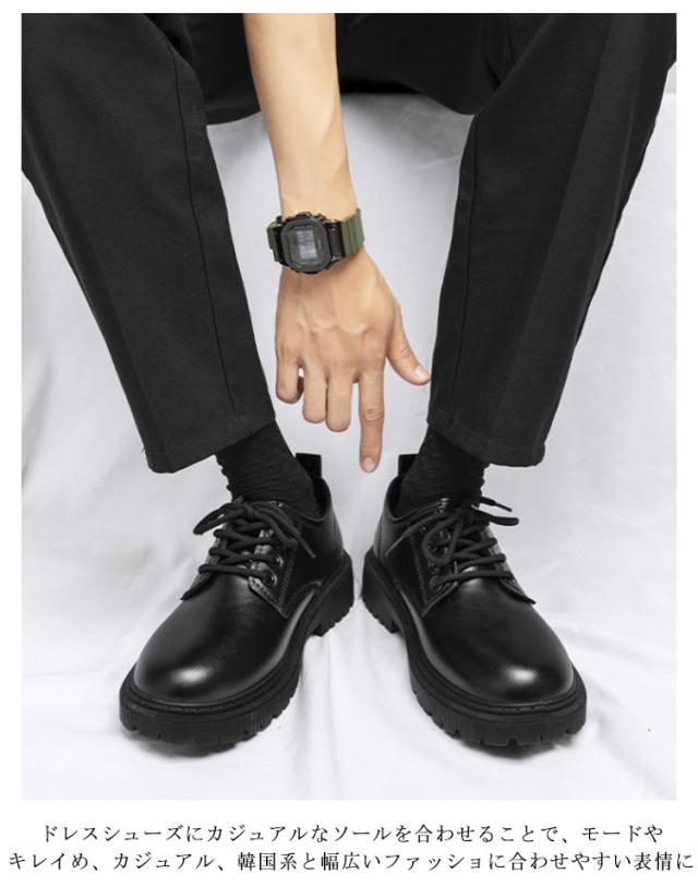 | 24-27.5cm!通勤・通学や10代/20代/30代/40代/50代/60代と年代を問わず使えるビジネスシューズ。 ドレスシューズにカジュアルなソールを合わせることで、モードやキレイめ、カジュアル、韓国系と幅広いファッショに合わせやすい表情に。 ビジネスシーンへのセットアップスタイル、スーツスタイルにも合わせることが出来ます。 丸みのあるプレーントゥで普段使いしやすい。 オールシーズンお使いいただける万能デザインです。 | |