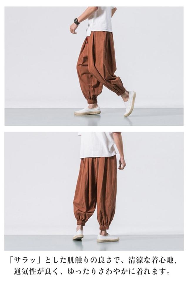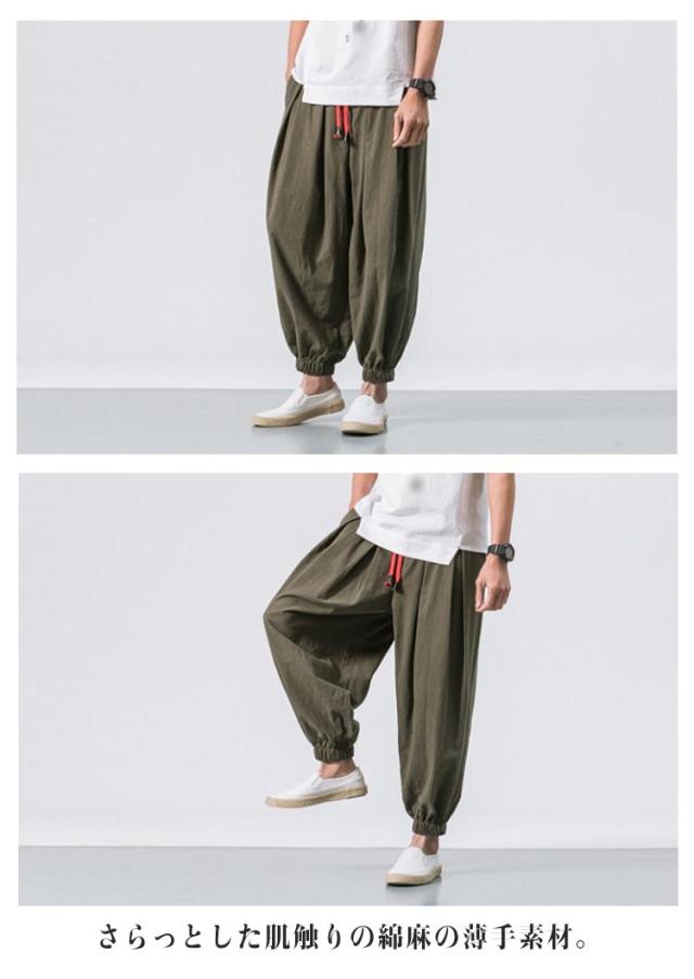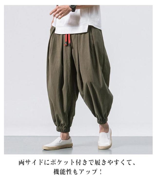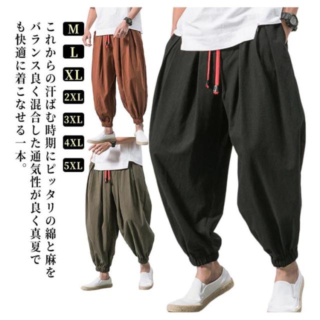 サルエルパンツ 秋 リラックス 夏 サルエル 綿麻 イージーパンツ 春 ジョガーパンツ コットンリネン パンツ 薄手 アラジンパンツ ワイドパンツ 大きいサイズ メンズ お兄系 ゆったり ロングパンツ ポケット付き 黒 ルームウェア 父の日 プレゼント カーキ