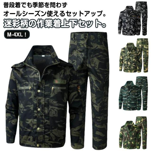 | M-4XL!普段着でも季節を問わずオールシーズン使えるセットアップ。迷彩柄の作業着上下セット。 スッキリしたシルエットでスタイリッシュに着こなしていただけます。 胸には大きめのフラップ付きポケット、さらに腰部の左右にもポケットを配置し、収納箇所が充実。 シンプルな中に光るこだわりのデザイン。オールシーズン対応で、ワークシーンやアウトドアなど様々なシーンで着こなせる一枚です。 | |