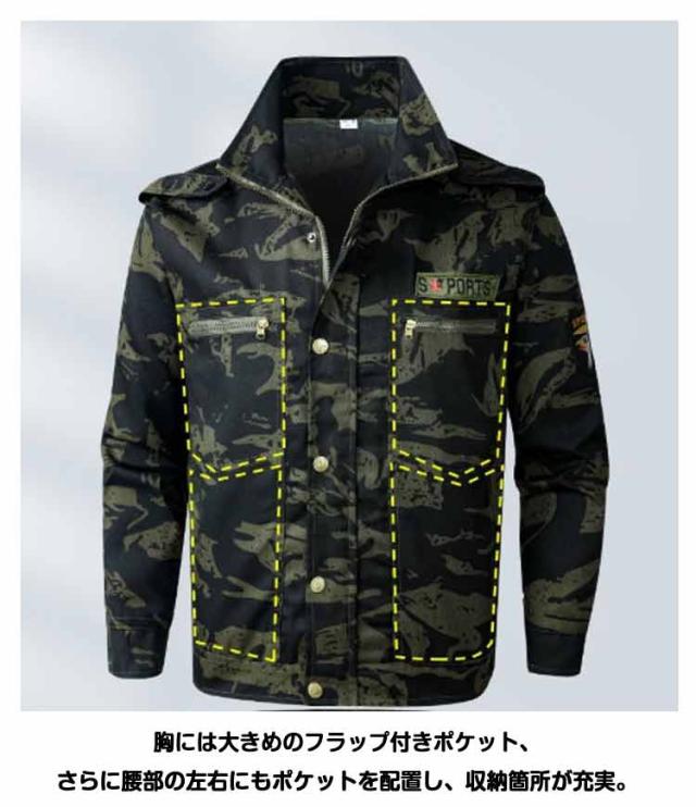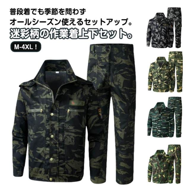 迷彩柄 作業服 作業服 上下セット ジャケット ミリタリー 2点セット メンズ ロングパンツ 制電 ワークウェア 作業着 カーゴパンツ 耐磨耗 ユニフォーム カジュアル おしゃれ マルチポケット 丈夫 お仕事 薄手 通気性 男女兼用 送料無料 春