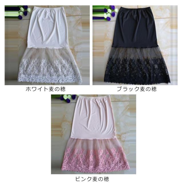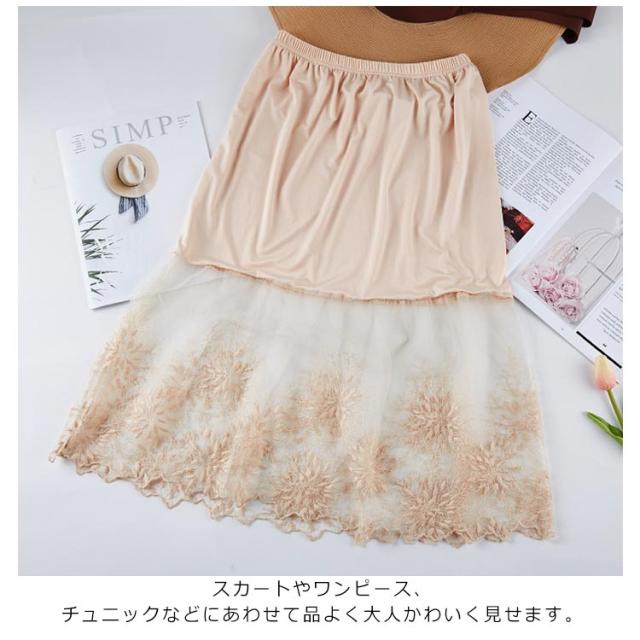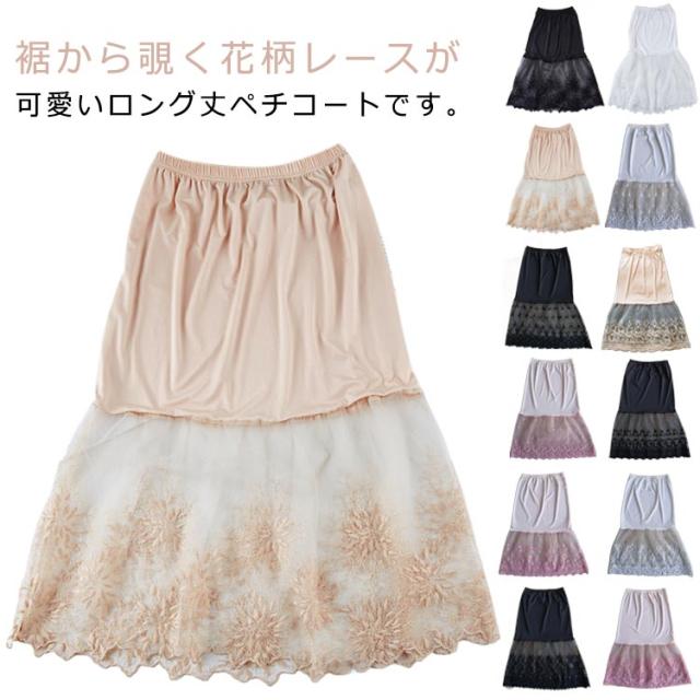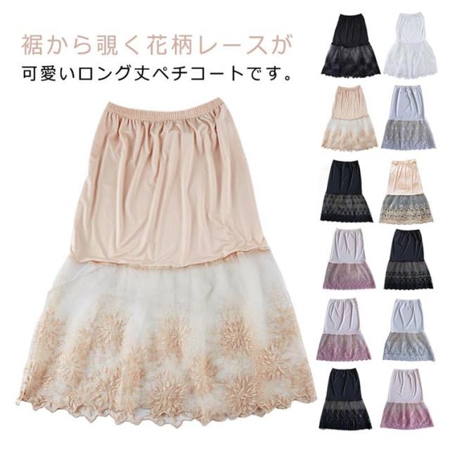 ミモレ丈 チュール ペチコート レースペチコート スカート ペチコート インナー 膝下丈 スカート レディース 刺繍 ウエストゴム ドレスインナー ロングスカート チラ見せ 下着 フェミニン オシャレ 大人可愛い