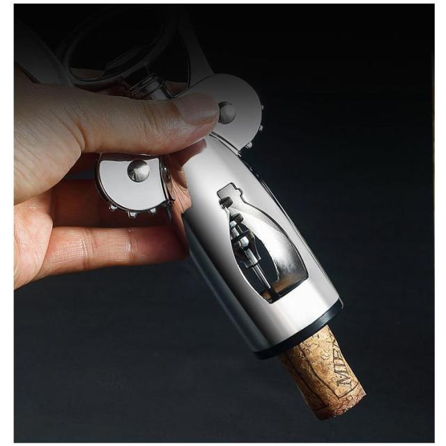 | 簡単にコルク抜ける!ワインオープナー。 新しい設計に変更されております。以前のコルク抜きより、コルクを損壊する可能性が低くなりました。 亜鉛合金属で出来ているため、丈夫で長く使えます。 使いやすいソフトタッチの取っ手は、初心者でも簡単に使えます。 ビルトインコルク抜きと強いワイングは、コルク抜きは力が無くても簡単に開けられて便利だ。 レストランやバーや自宅など場所を選ばず使用できます。 使い方:まず、スパイラルをコルクの中心に置き、レバーを回転させながらスパイラル部分をねじ込む。 次ぎ、ねじ込んでいくにつれて両側の羽のようなレバーが少しずつ上がってくる。 最後、上がったレバーをゆっくり下げると、てこの原理でコルクが抜ける。 | |