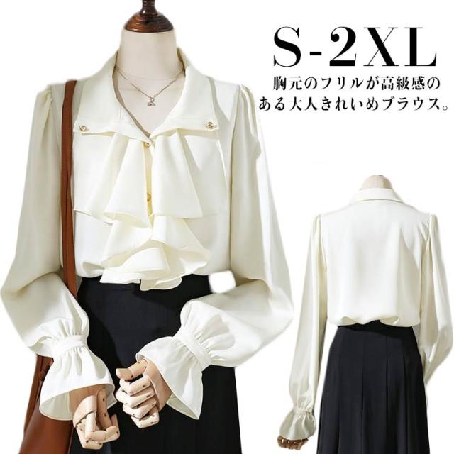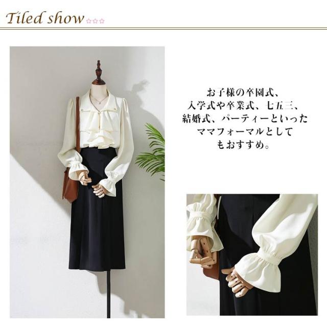 フレア 華やか ドレープ ブラウス 長袖シャツ 胸元フリル 入学式 フリル パフスリーブ レディース フォーマルブラウス ブラウス シャツ 母 入園式 制服 ビジネス 合唱 フリル 演奏会 発表会 OL フリルブラウス