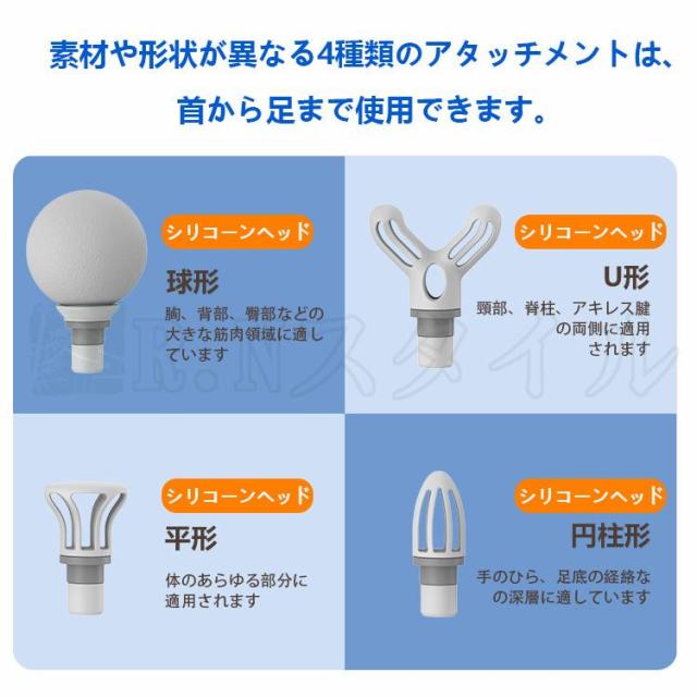 [4種類のアタッチメント、体のあらゆる部位にフィットします。]