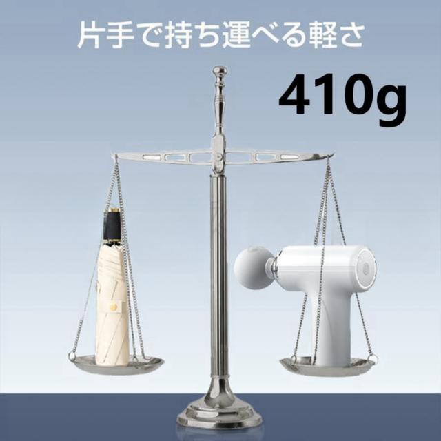 [コンパクトなのにパワフルさを維持しつつ、 本体が約420gの"マッサージガン"なので、片手でラク〜に使えて"マッサージの代用"にピッタリです。]