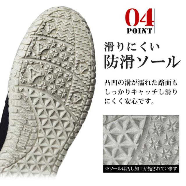 凹凸の耐滑ソールで、雨に濡れた路面でもしっかりキャッチ。