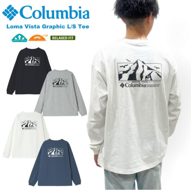 Columbia コロンビア 長袖Tシャツ ロンT ヘビーウエイト UVカット UPF50 紫外線対策 吸水速乾 アウトドア キャンプ 釣り 登山 ハイキング リラックスフィット メンズ ロマビスタグラフィックロングスリーブTシャツ PM0764 ゆうパケット1点まで送料無料 SALE