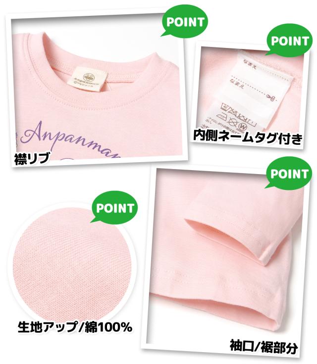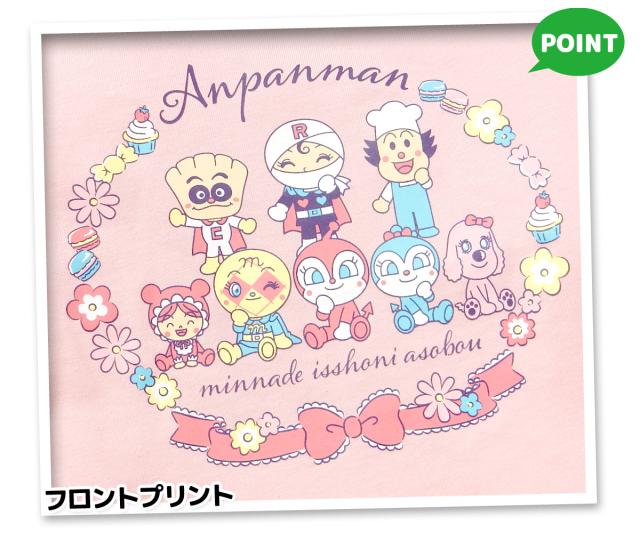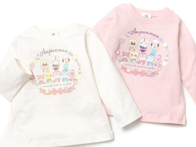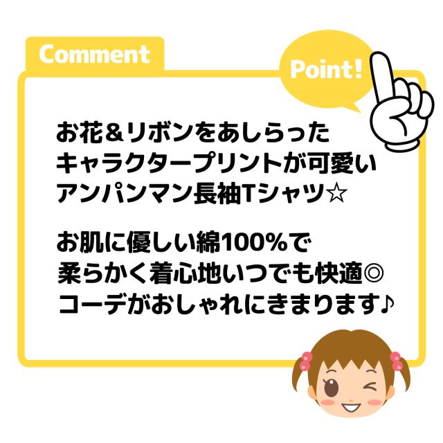 【送料無料】女児 ベビー 綿100% 長袖 Tシャツ アンパンマン お花リースプリント ネームタグ ベビー服 女の子 80cm 90cm 95cm iw-1253【メール便対応】