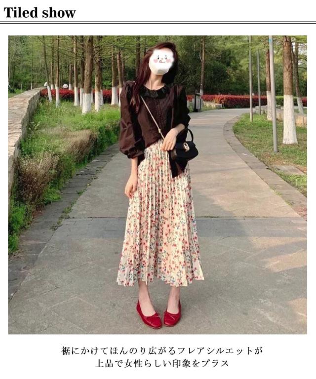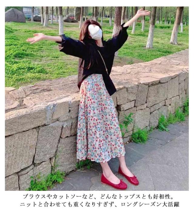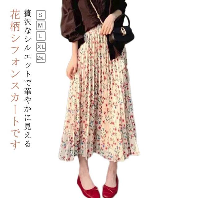 スカート シフォン マキシ プリーツスカート フレアスカート ロング ボトムス ロングスカート ストンと落ちる チェックスカート シフォンスカート プリーツ マキシスカート ストンと落ちる ゴム Aライン 体型カバー 花柄 おしゃれ きれいめ 春 夏 秋