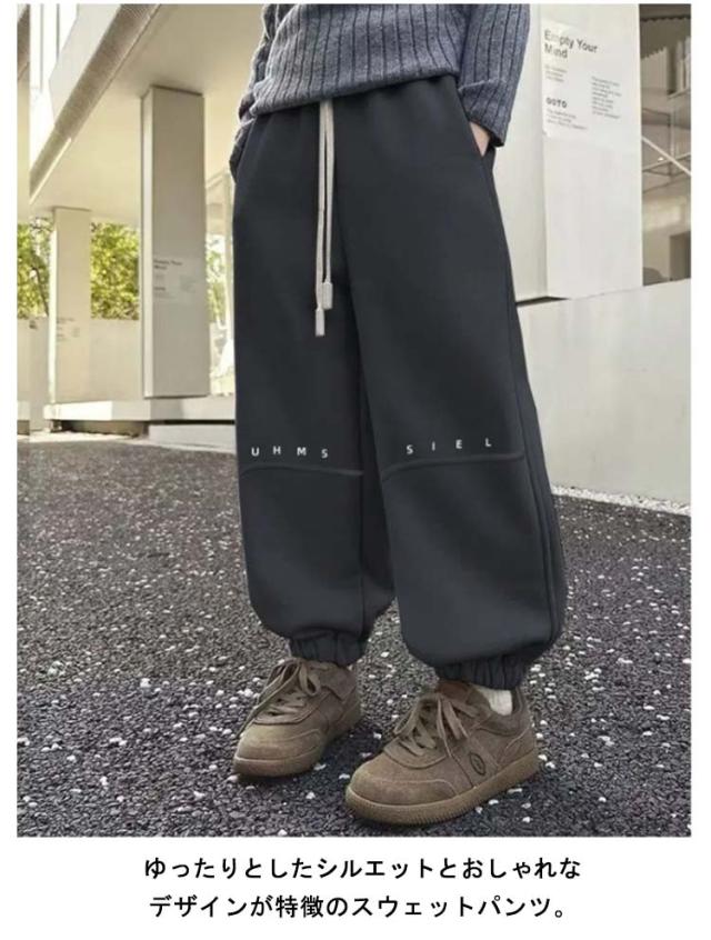 | ゆったりとしたシルエットとおしゃれなデザインが特徴のスウェットパンツ。 ウエスト、裾はゴム仕様、ウエストに調整可能な紐も付いているので緩い場合も心配ありません、両サイドにポケット付きで手ぶらでの外出にも便利。 普段のTシャツ、カーディガン、ジャケット等、いろんなトップスとも相性いいです。 | |
