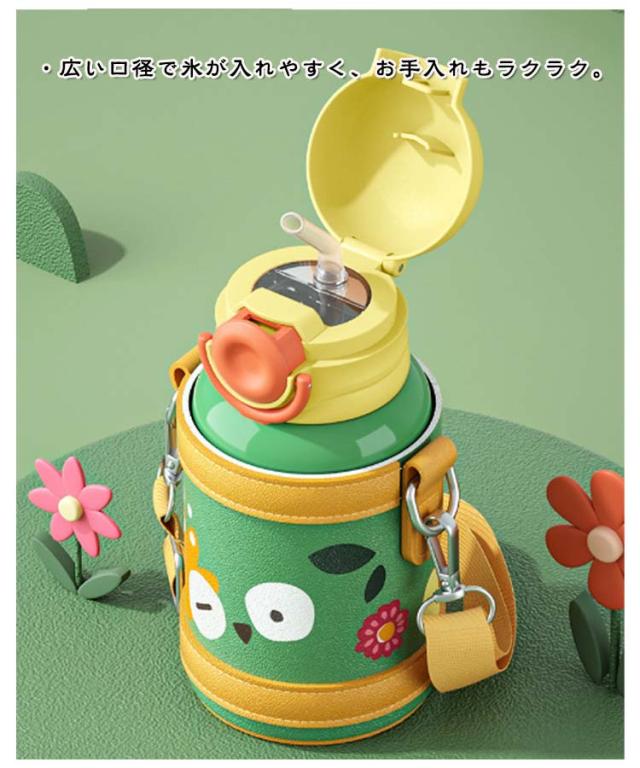 保育園 ステンレス かわいい 子ども 水筒 450ml 直飲み マグ ワンタッチ コップ飲み ストロー 保冷 保温 ショルダー カバー付き 肩掛け 幼稚園 幼児 2way 女の子 男の子 キッズ おしゃれ 遠足 入園準備