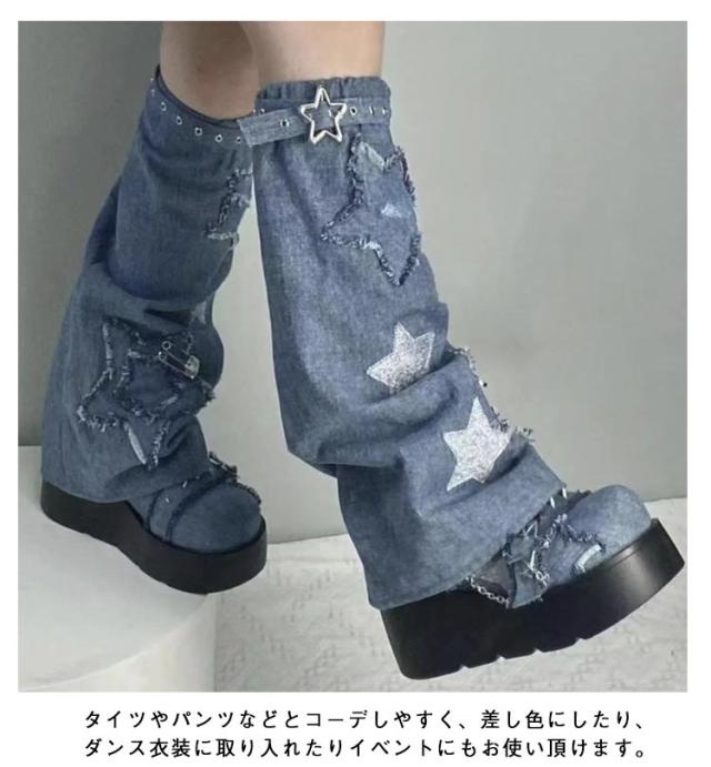 星柄 ダンス レッグウォーマー 星柄 ジンズ k-pop 衣装 おしゃれ デニム ルーズソックス 可愛い レディース デニムレッグカバー 衣装 韓国 hiphop 衣装 カジュアル
