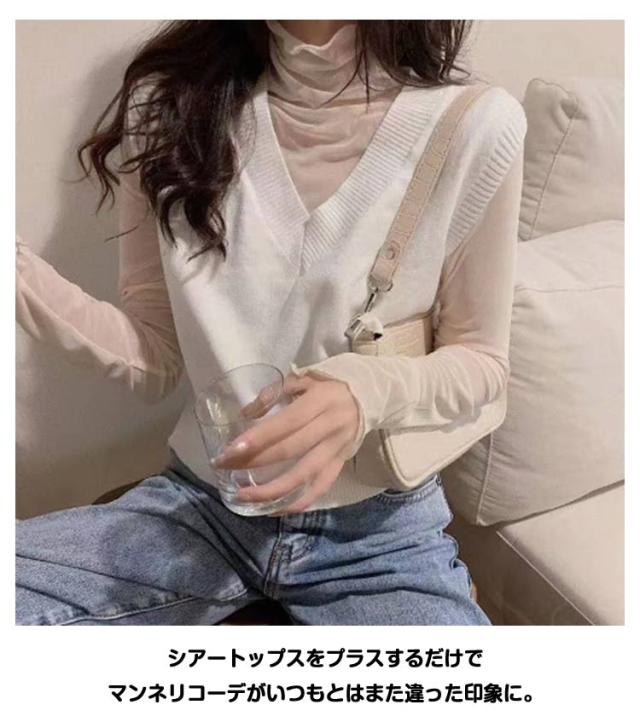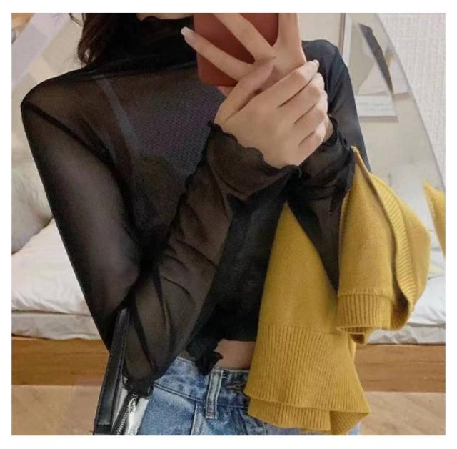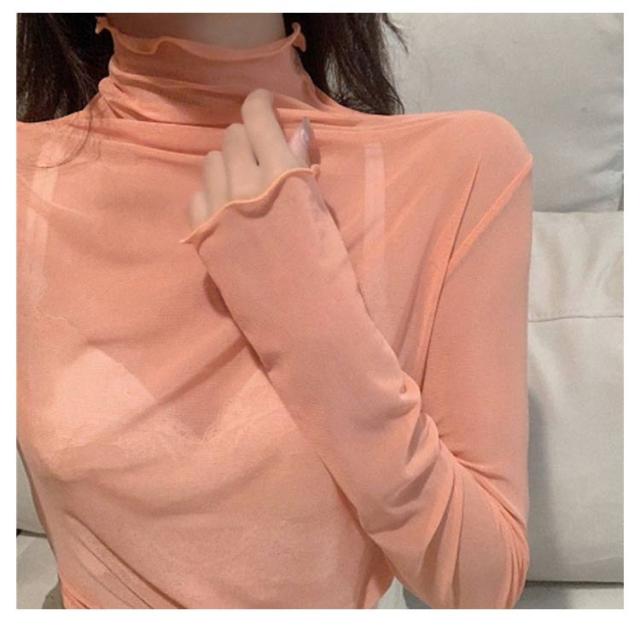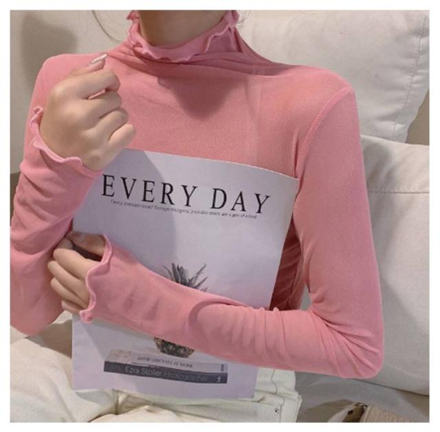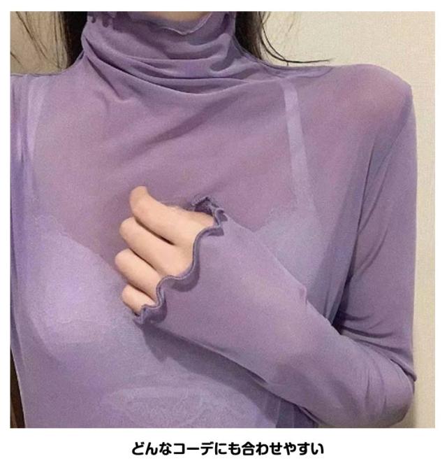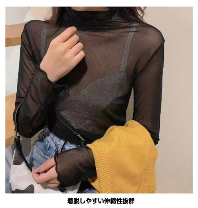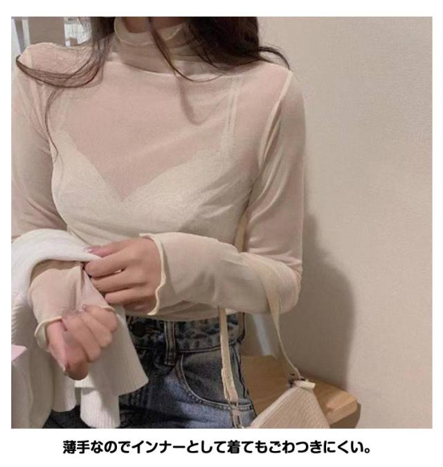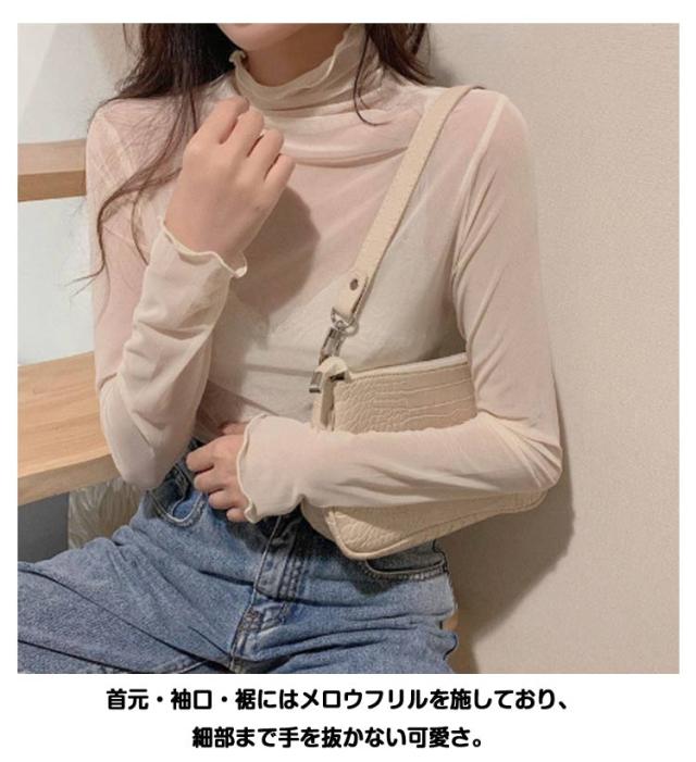 2枚セット 2枚セット カットソー インナー シアートップス 長袖 レディース 重ね着 シースルー 春夏 透け タートルネック おしゃれ 秋 レイヤード コーデ 無地 柔らかい 普段着 オフィス メロウフリル フリルネック シアーシャツ