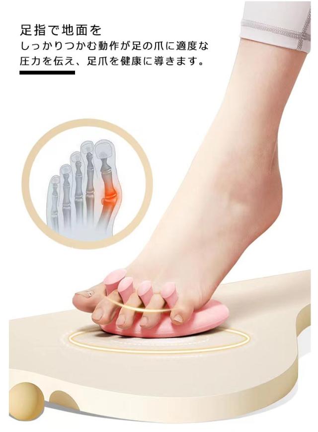 | ご自宅で簡単♪ 健康なアーチ・健康な足づくりに!2個セット 4つの突起を足指の間に挟み、ストレッチやつま先立ち、片足立ちなどのトレーニングを重ねれば、足指力が目覚めてバランス力アップ。 足指で地面をしっかりつかむ動作が足の爪に適度な圧力を伝え、足爪を健康に導きます。 足裏のアーチを鍛えるトレーニングで、運動力の向上とトラブルに強い足を目指せます。 足指の力を向上させると、運動パフォーマンスも向上! | |