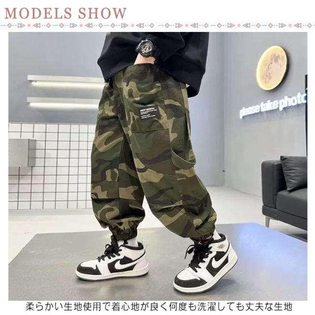 キッズ カーゴパンツ パンツ ブラック 迷彩 カーゴパンツ グリーン キッズダンス衣装 緑 衣装 黒 ロング丈 ヒップホップ 練習着 子供 子ども ストリート カモフラージュ 女の子 男の子