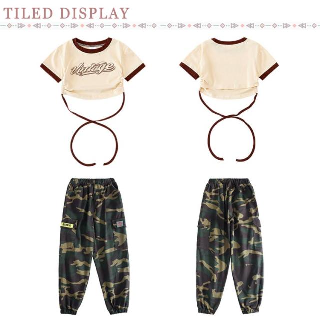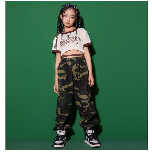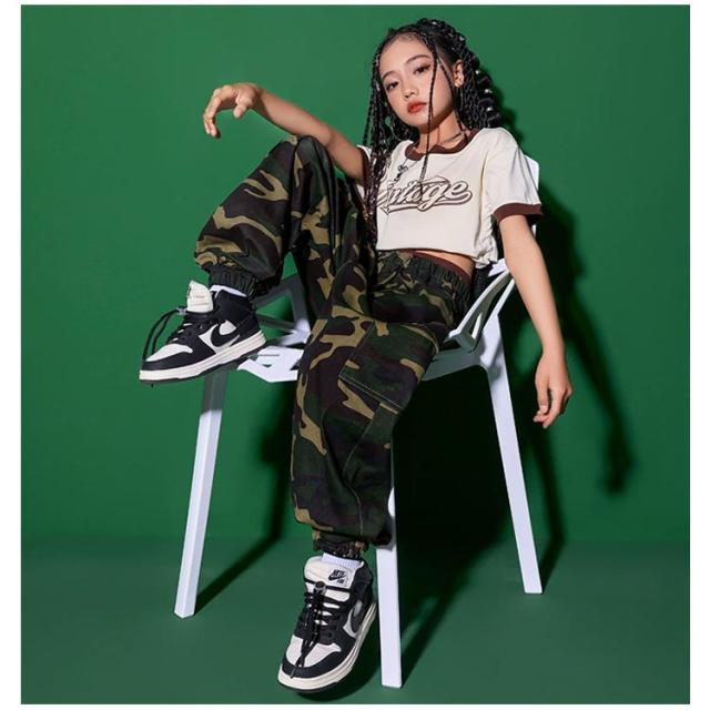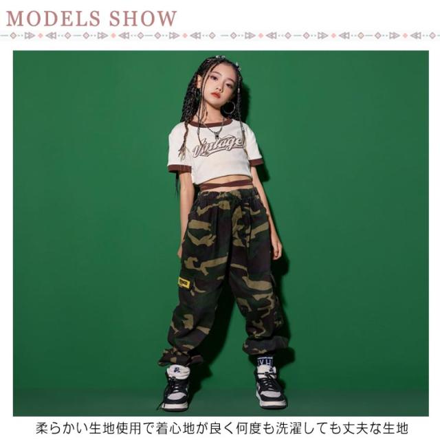 子ども パンツ 緑 半袖 迷彩 カーゴパンツ Tシャツ キッズ キッズダンス衣装 ブラック キッズ 子供 黒 グリーン ヒップホップ ダンス ロング丈 練習着 ストリート カモフラージュ 女の子 男の子