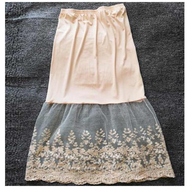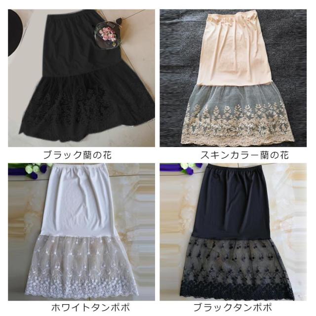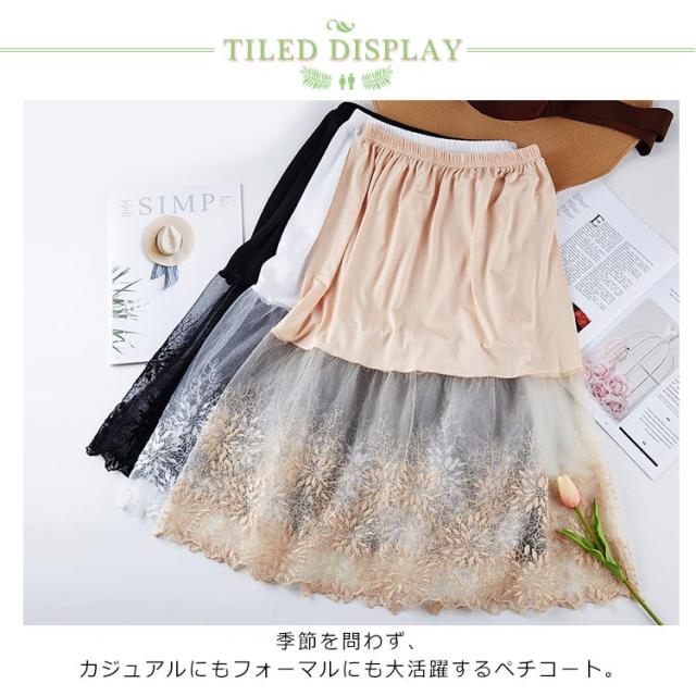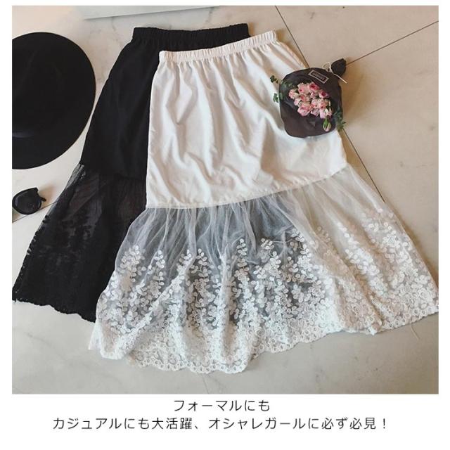 ペチコート チュール ウエストゴム 裾ふんわり 刺繍 ミモレ丈 ペチコート レースペチコート レディース スカート ロングスカート スカート 膝下丈 ドレスインナー チラ見せ 下着 フェミニン オシャレ 大人可愛い