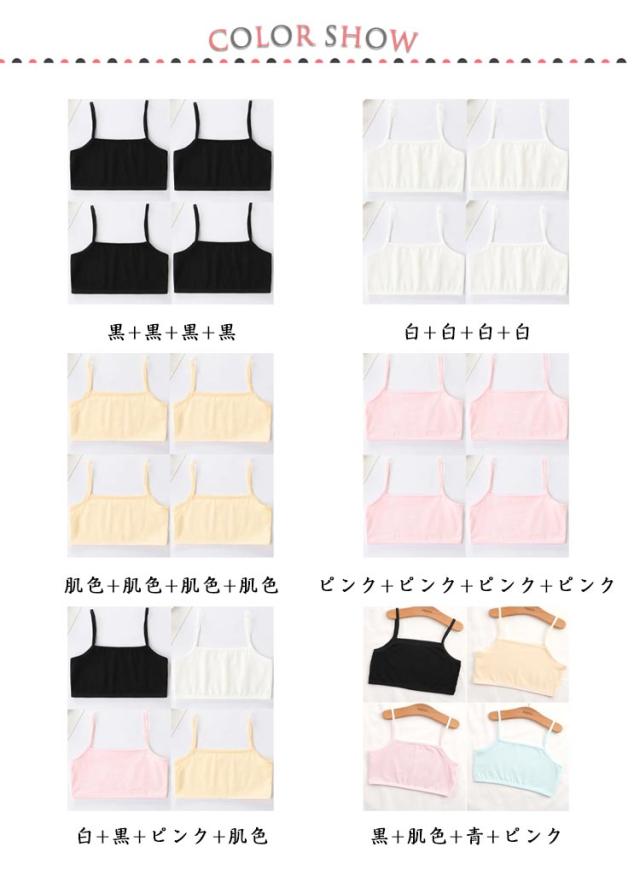 ハーフトップ キャミソール 子供服 中学生 無地 下着 キッズ ヒップホップ 小学生 4枚セット ダンス衣装 女の子 ジュニア インナー チューブトップ 女児 アンダーウェア ブラトップ キッズ ホワイト ブラック