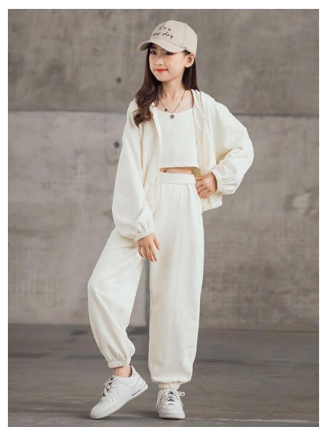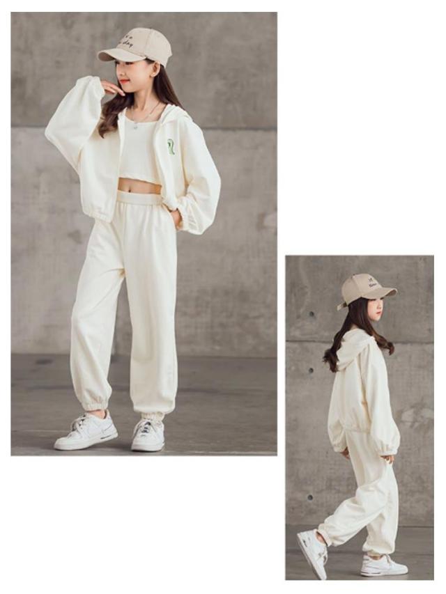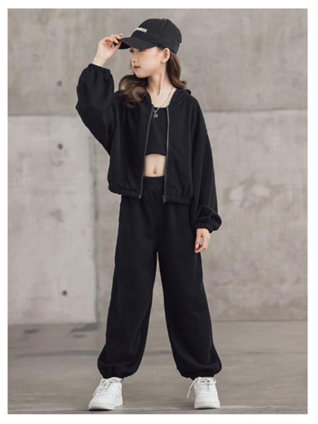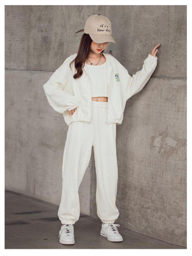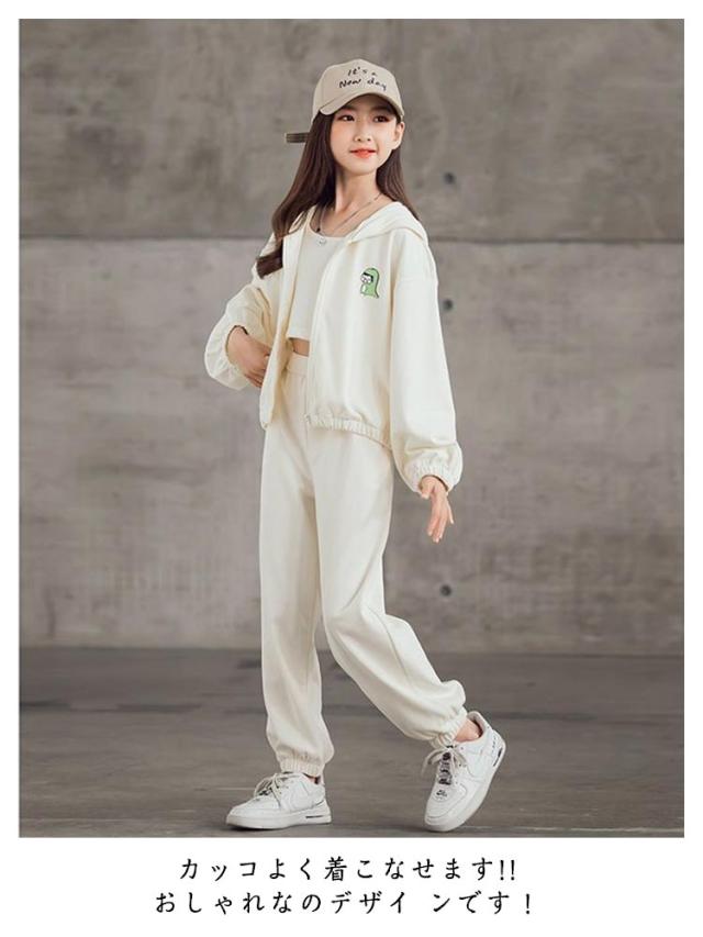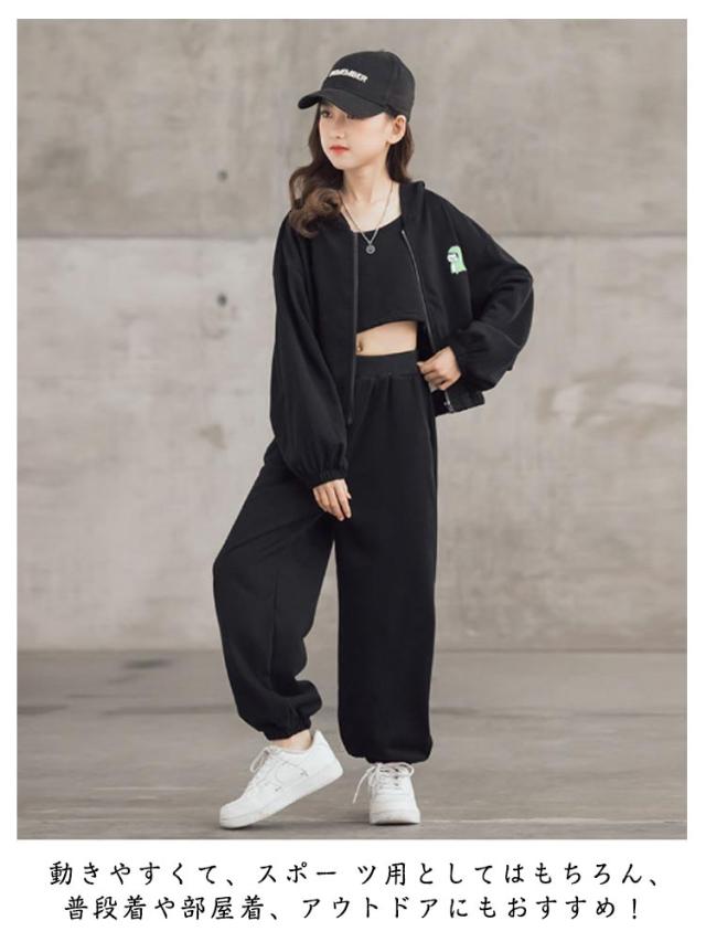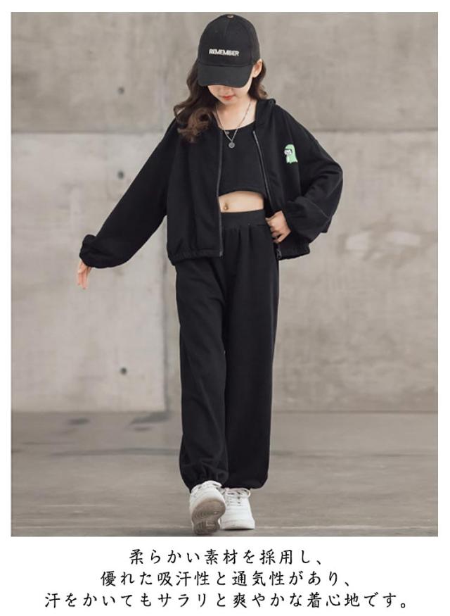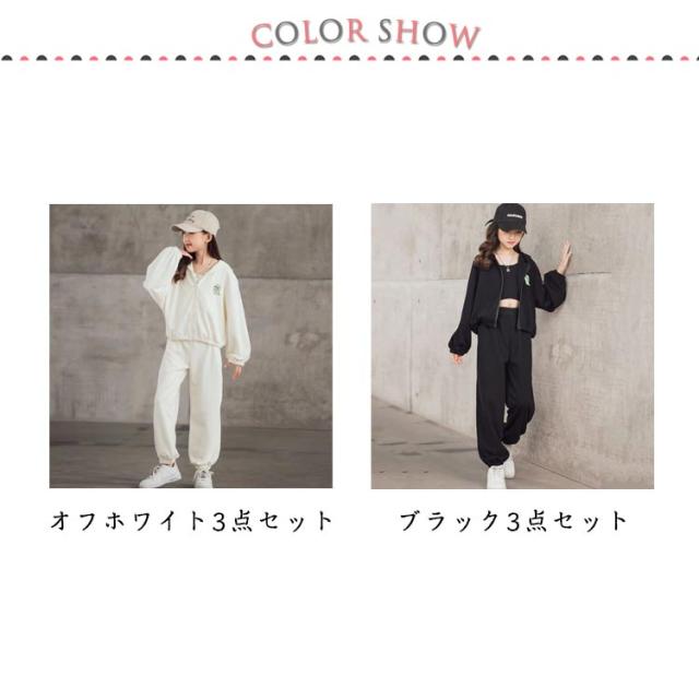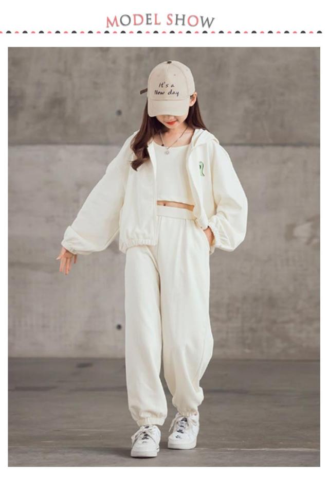 ジャージ キャミソール 3点セット キッズ ガールズ スウェット スポーツウェア トレーナー パーカー 上下セット 韓国風 パーカー 長袖 運動着 子供服 3点セット ジュニア 春秋 カジュアル HIPHOP ダンス 衣装 スポーツ ウェア