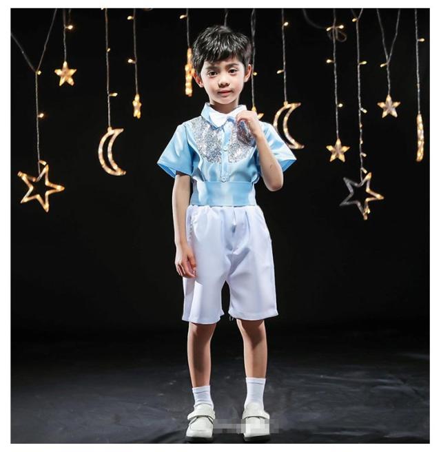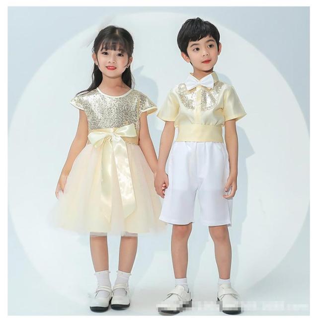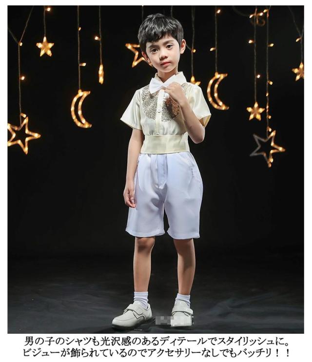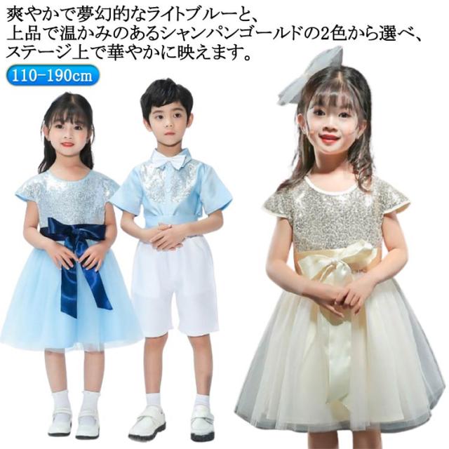 半袖 フォーマル キッズ ステージ衣装 110-190cm スーツ 演出服 ドレス 男の子 スパンコール お揃い 子供服 ステージ衣装 ステージ衣装 キラキラ ダンス衣装 舞台衣装 スパンコール 人気 演奏会 誕生日 年賀状 写真撮影