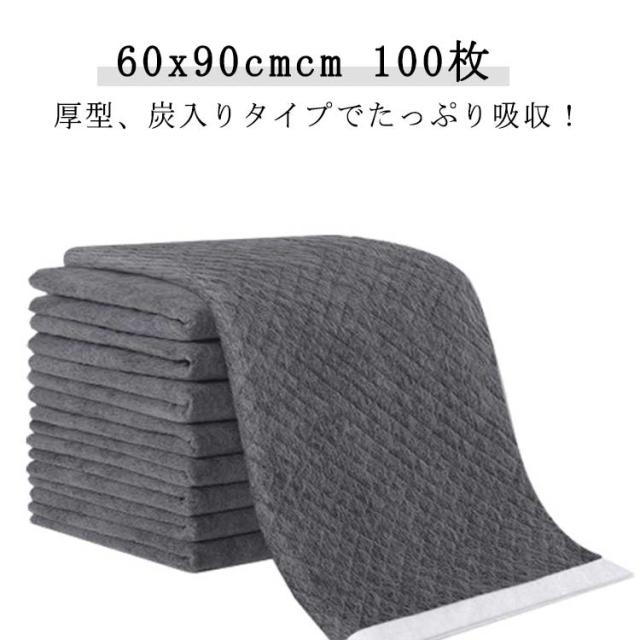消臭 炭入りペットシーツ ペットシーツ 60x90cm スーパーワイド 100枚入 厚型 タケ炭 使い捨て 犬 猫 多頭飼い ワイド シート トイレシート 吸水 おしっこシート