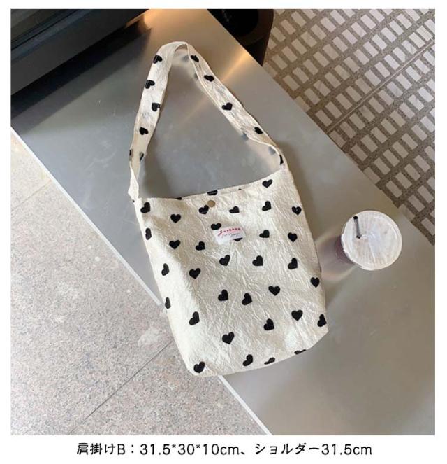 | 【選べる4タイプ】【ハート柄バッグ】 今年トレンドの大人気のハート柄デザイン! ガーリーなハート柄もモノトーンなら大人っぽく持てて◎ 荷物もたくさん入るので、通勤・通学時の サブバッグとしても、コーデのアクセントにも◎ 手提げバッグ:31*19*14cm、ショルダー20cm 肩掛けA:30*38*8cm 肩掛けB:31.5*30*10cm、ショルダー31.5cm 肩掛けC:44*34*15cm、ショルダー28cm | |