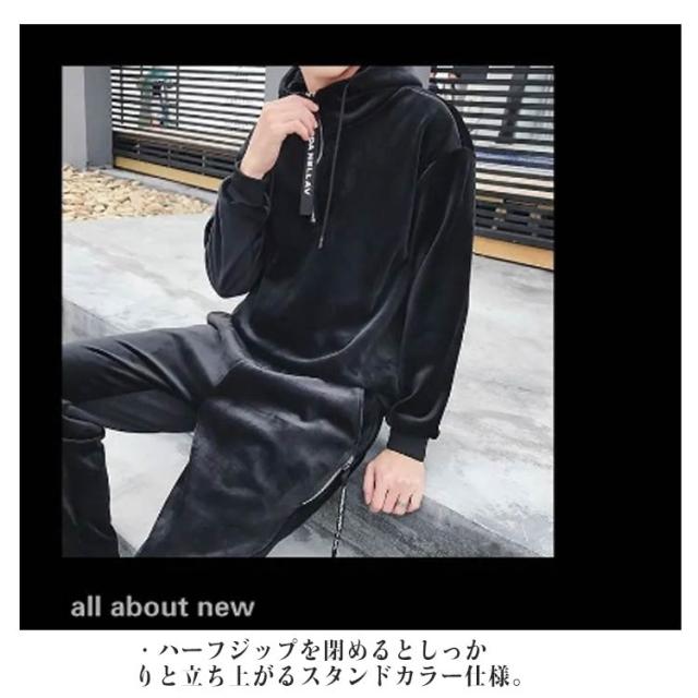 セット 上下 トレーナー メンズ パーカー スウェット ジャージ ジャージ 裏起毛 パーカー ベロアセットアップ スエット パーカー 長袖 ベロアジャージ 厚手 ハーフジップ フロントジップ フード付き あったかもこもこ 部屋着 無地
