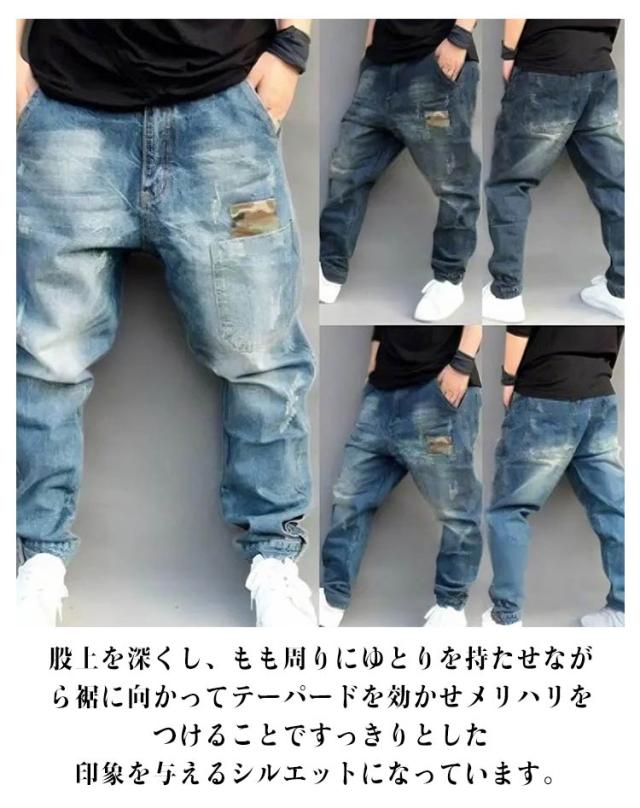 ジョガーパンツ パンツ ブルー サルエルパンツ サルエルパンツ デニムパンツ デニム 秋 夏 春 デニムサルエル メンズ ジーンズ Gパン テーパード ゆったり ルーズ 大きいサイズ ポケット付き ジーパン ストリート カジュアル 韓国 かっこいい